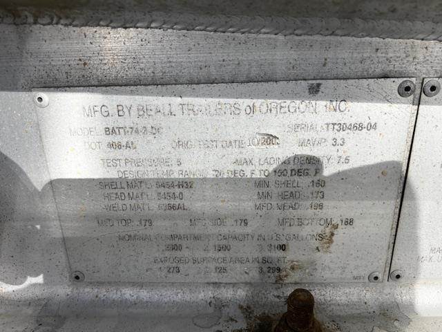 2004 BEALL 7400 GALLON 3-COMPARTMENT 4-AXLE ALUMINUM PULL TANK TRAILER