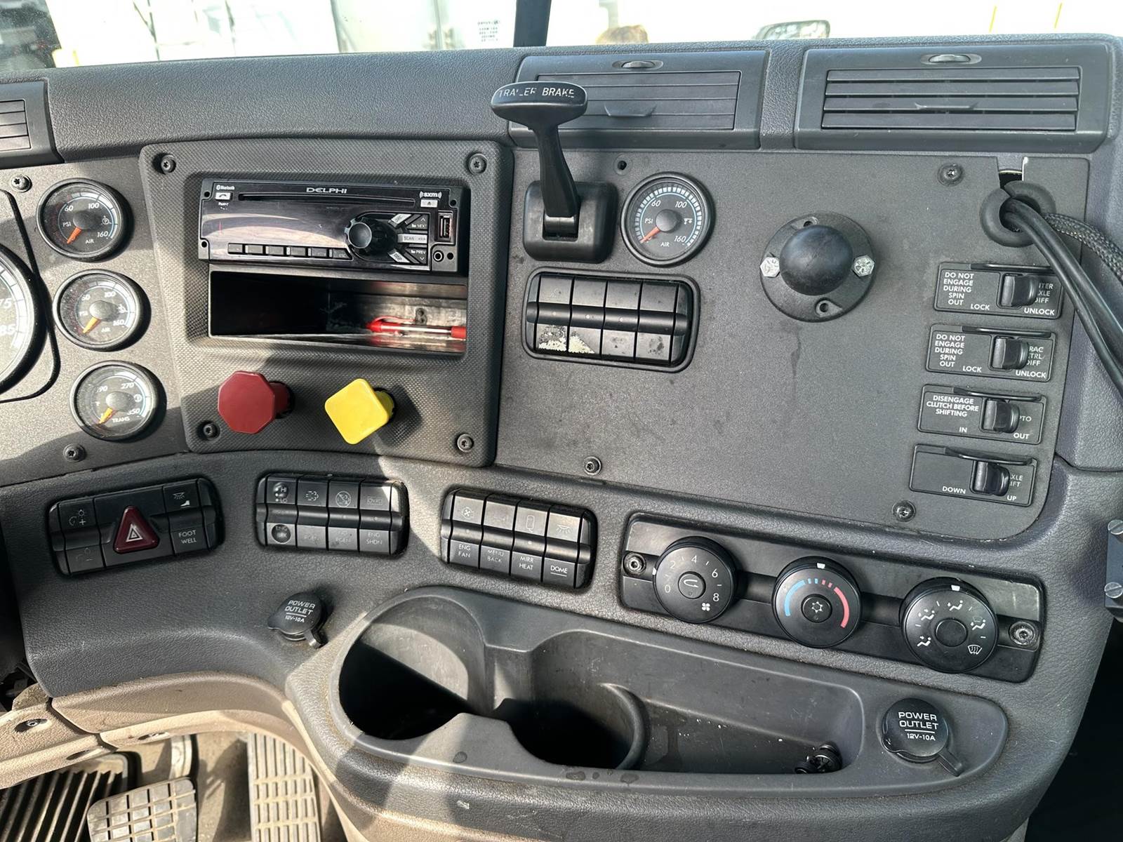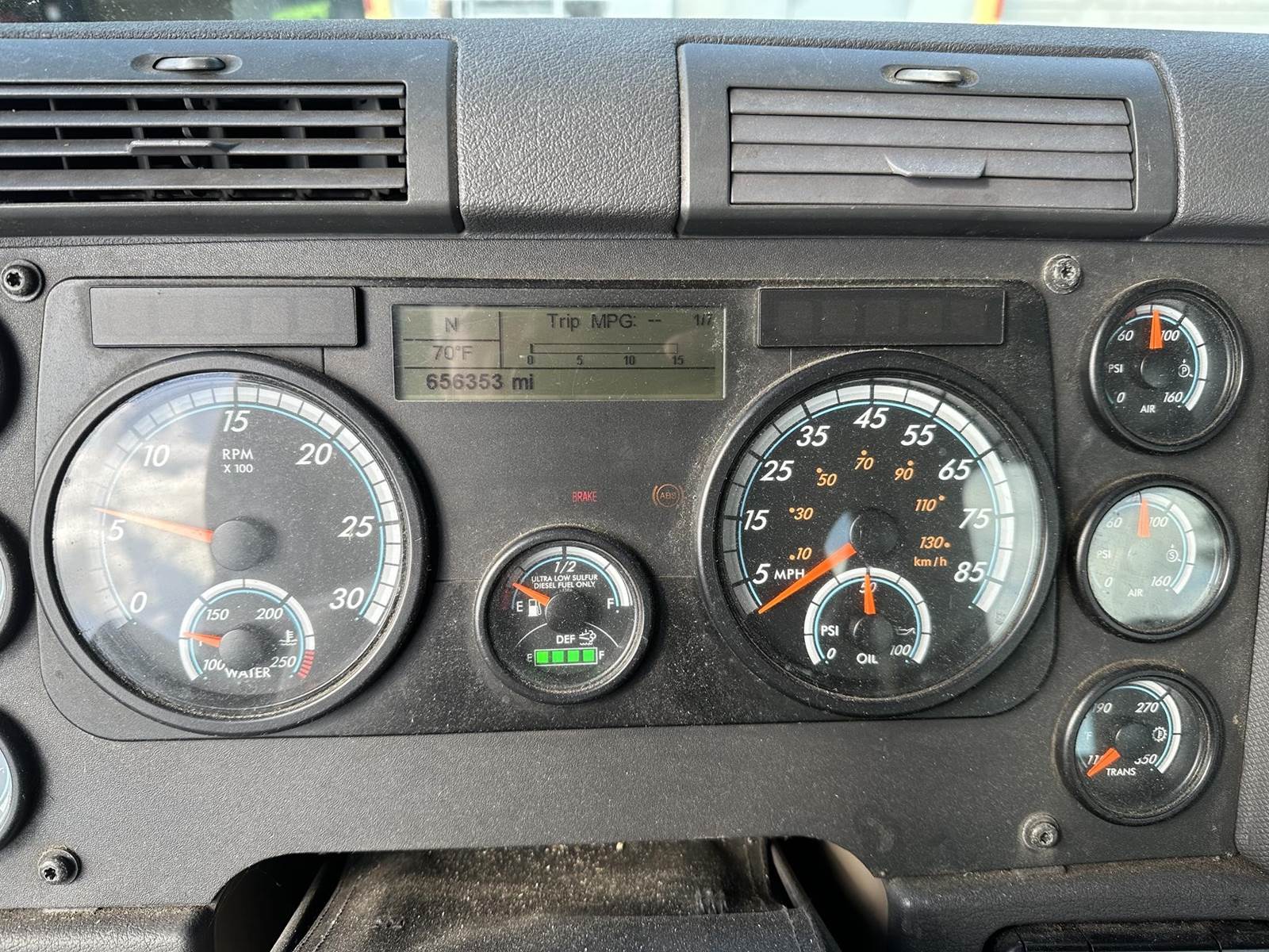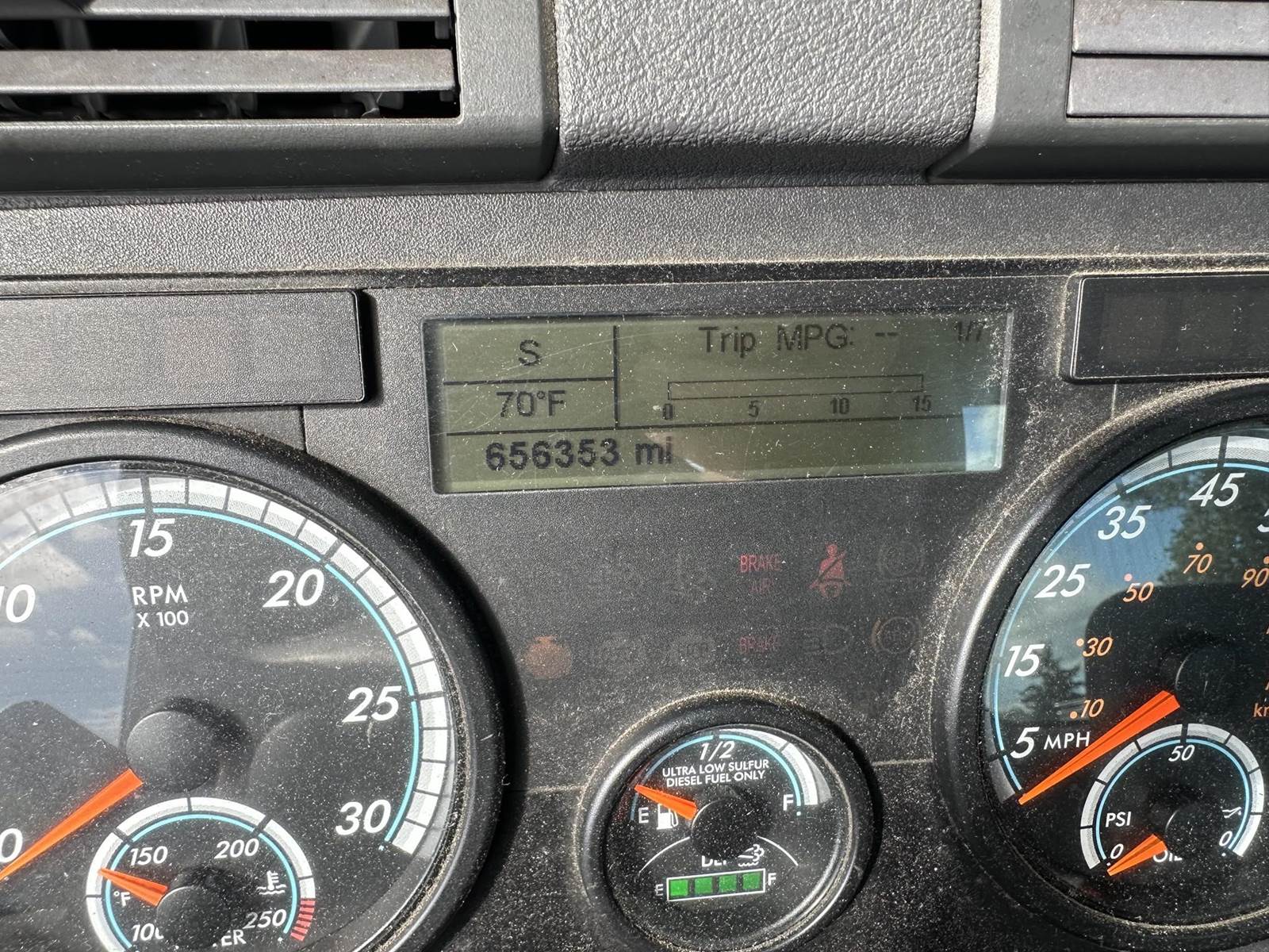 Detroit DD15 14.8L (515HP), Engine Brake, Eaton-Fuller FRO-12610C 10-Speed Manual Transmission, 14,700# Steering Axle, 13,200# Steerable Lift Axle with 255/70R22.5 tires, 40,000# Drive Axles (4.11 Ratio), 11R22.5 Tires on Aluminum Wheels, Air Liner suspension, Steel Frame Rails, 256" Wheelbase, Full Aluminum Fenders Over Lift Axle and Drive Tires, 120-Gallon Aluminum Fuel Tank Under Driver's Door With Aluminum Steps, Steel DOT Rear Bumper, Pintle Hitch and Trailer Electric & Air, Single R/H Upright Exhaust w/ DPF, Air ride Cab with Air conditioning, Power Windows, Power Mirrors, Cruise Control, Tilt/Tele Steering Column, Cobra CB, Battery Shut-Off Switch....