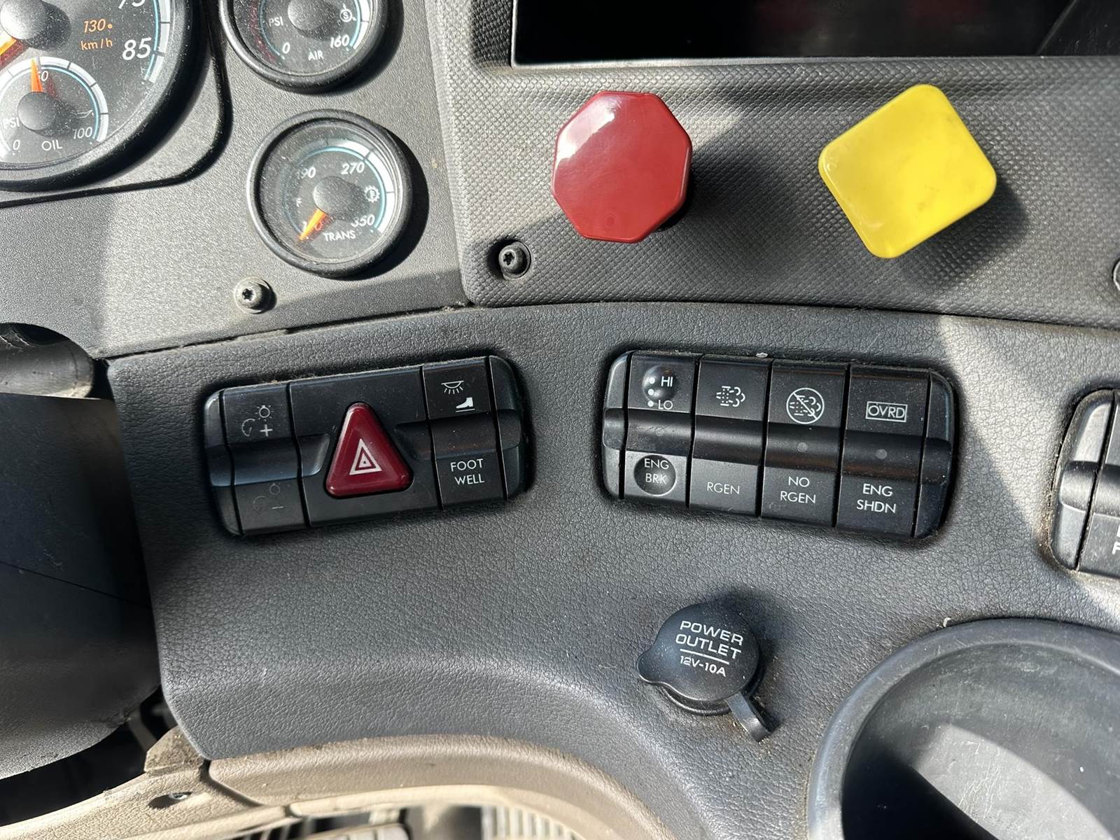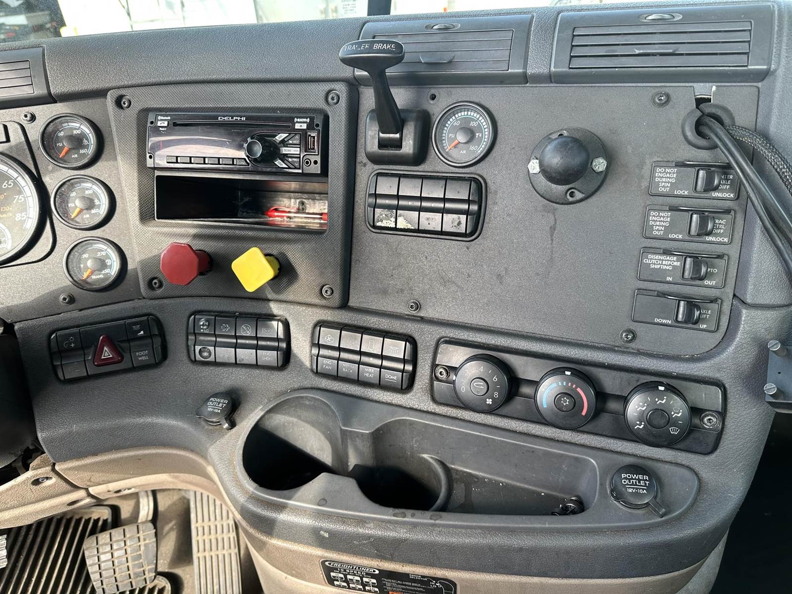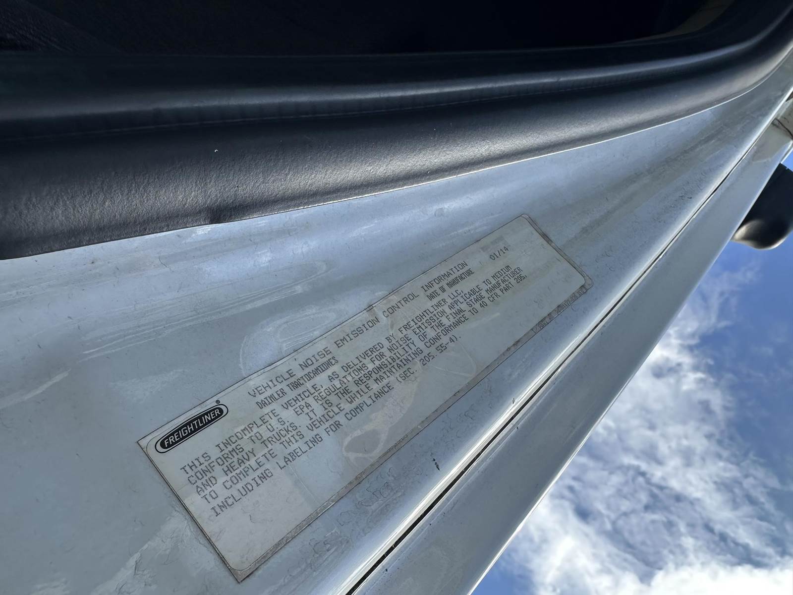 Detroit DD15 14.8L (515HP), Engine Brake, Eaton-Fuller FRO-12610C 10-Speed Manual Transmission, 14,700# Steering Axle, 13,200# Steerable Lift Axle with 255/70R22.5 tires, 40,000# Drive Axles (4.11 Ratio), 11R22.5 Tires on Aluminum Wheels, Air Liner suspension, Steel Frame Rails, 256" Wheelbase, Full Aluminum Fenders Over Lift Axle and Drive Tires, 120-Gallon Aluminum Fuel Tank Under Driver's Door With Aluminum Steps, Steel DOT Rear Bumper, Pintle Hitch and Trailer Electric & Air, Single R/H Upright Exhaust w/ DPF, Air ride Cab with Air conditioning, Power Windows, Power Mirrors, Cruise Control, Tilt/Tele Steering Column, Cobra CB, Battery Shut-Off Switch....