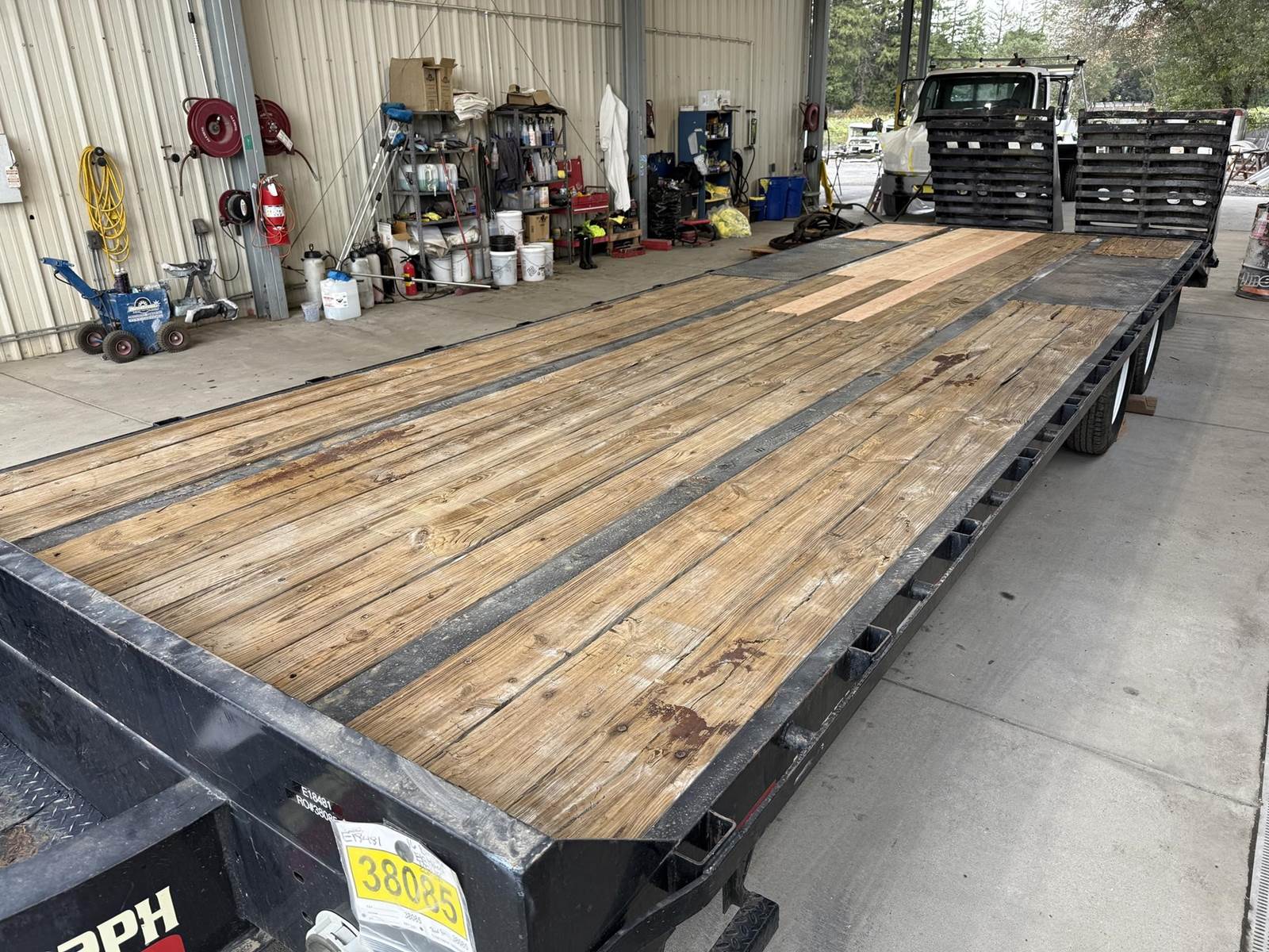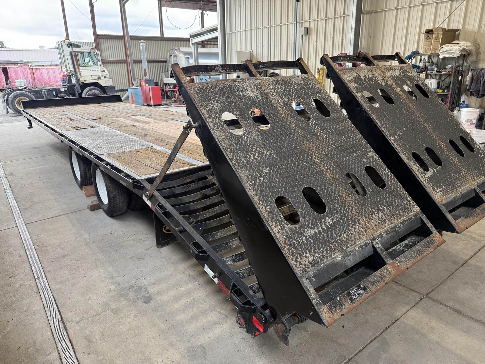 (Mfg. 1/16), Model 22PH-25+5, 25' Flat Deck w/ 5' Dovetail, Steel Fold-Up Ramps, Wood Decking, (2) 10,000# Axles, 23,900# GVWR, 17,800# Cargo Capacity, 6,100# Empty Weight, Leaf Spring Suspension, Electric Brakes, ST235/80 R-16 Radial Tires on Steel Wheels, Crank Down Landing Leg, 3/8" Heavy Duty Rub Rail, Full Size Spare Wheel & Tire Mounted @ Tongue R/H Side, Pintle Eye Hitch...