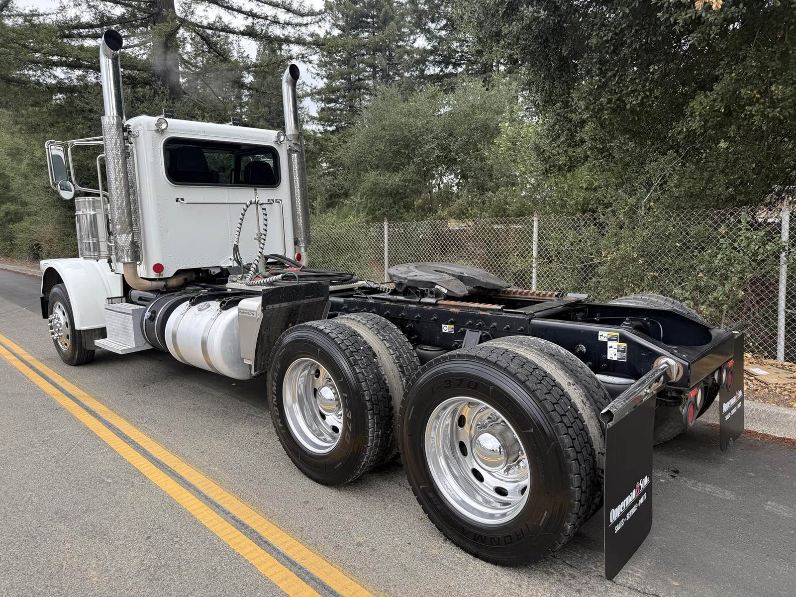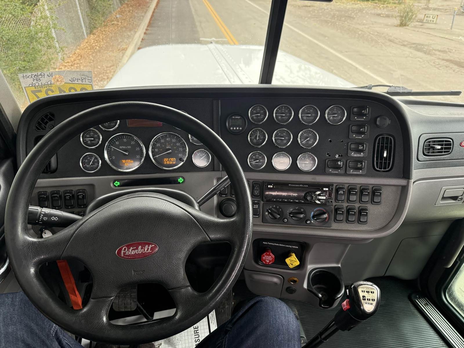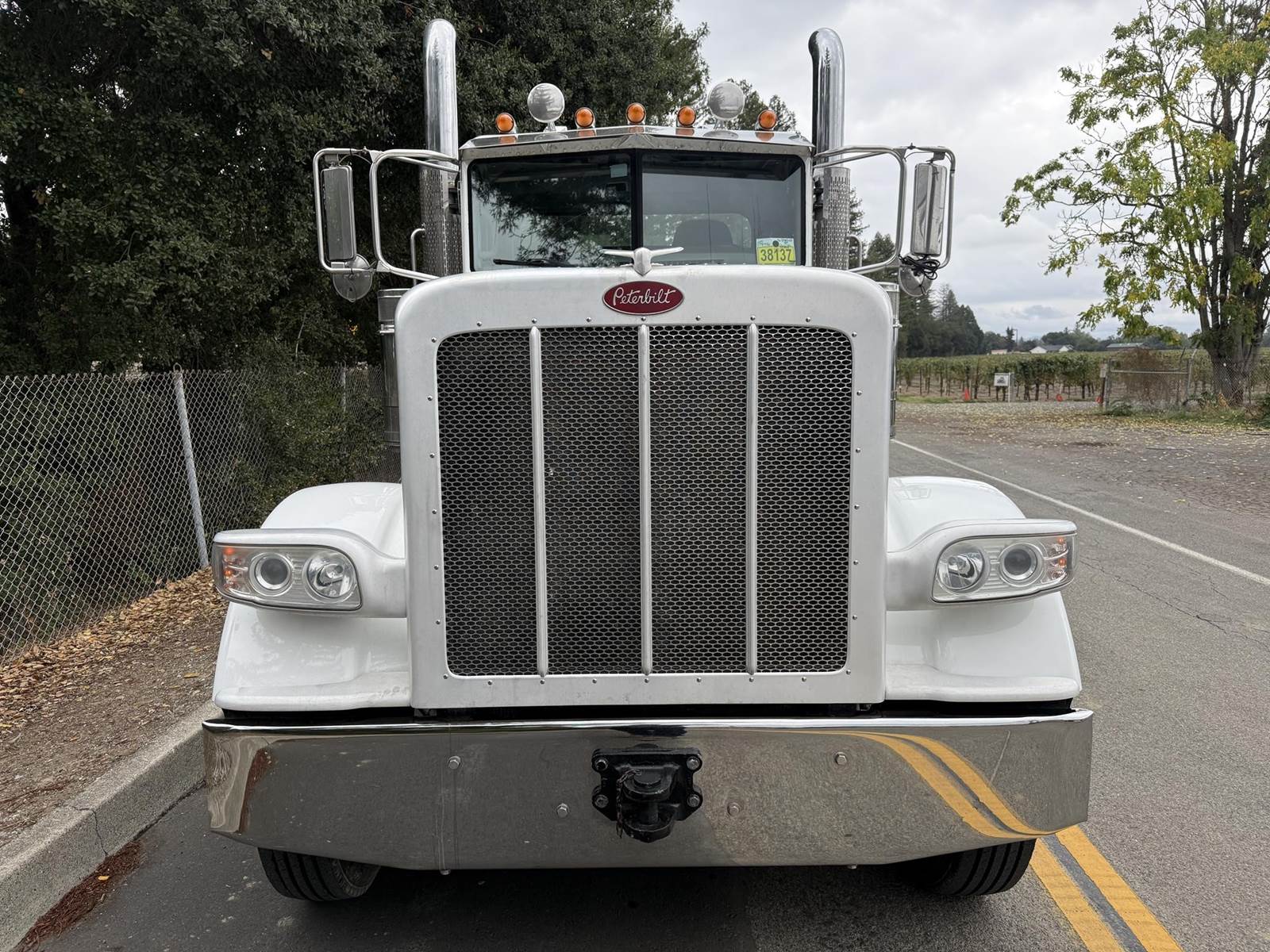 MX13 (485 HP), Engine Brake, Eaton Fuller 13-Speed Manual Transmission, 38,000# Dual Drive Rear Axles w/ Lockers, Peterbilt Air Leaf Suspension w/ Dash Deflate Switch, 13,200# Steer Axle w/ Power Steering, 235" W/B, 11R24.5 Tires on Peterbilt Slot All Aluminum Wheels, Disc Front Brakes, Cam Style Rear Brakes, L/H Aluminum Battery Box w/ Steps Under Driver Side Door, L/H Frame Mounted DEF, R/H 120 Gallon Aluminum Frame Mounted Fuel Tank w/ Steps, L/H 80 Gallon Aluminum Frame Mounted Fuel Tank, Chrome Bumper, Dual Stainless Steel Air Cleaners, Stainless Steel Visor, Dual Upright Chrome Exhaust w/ DPF, Chrome Front Bumper w/ Center Tow Pin, Twin Chrome Air Horns, Air Ride Cab, Aluminum Grip Strut Deck Plate, Stainless Quarter Fenders, Air Slide 5th Wheel, Peeper Window, Air Ride Seats, Tilt & Tele Steering Column, Gauge Package, Power Door Locks, Power Windows, Heated Mirrors, A/C, Cruise Control , Concert Class AM/FM Radio w/ CD Player......