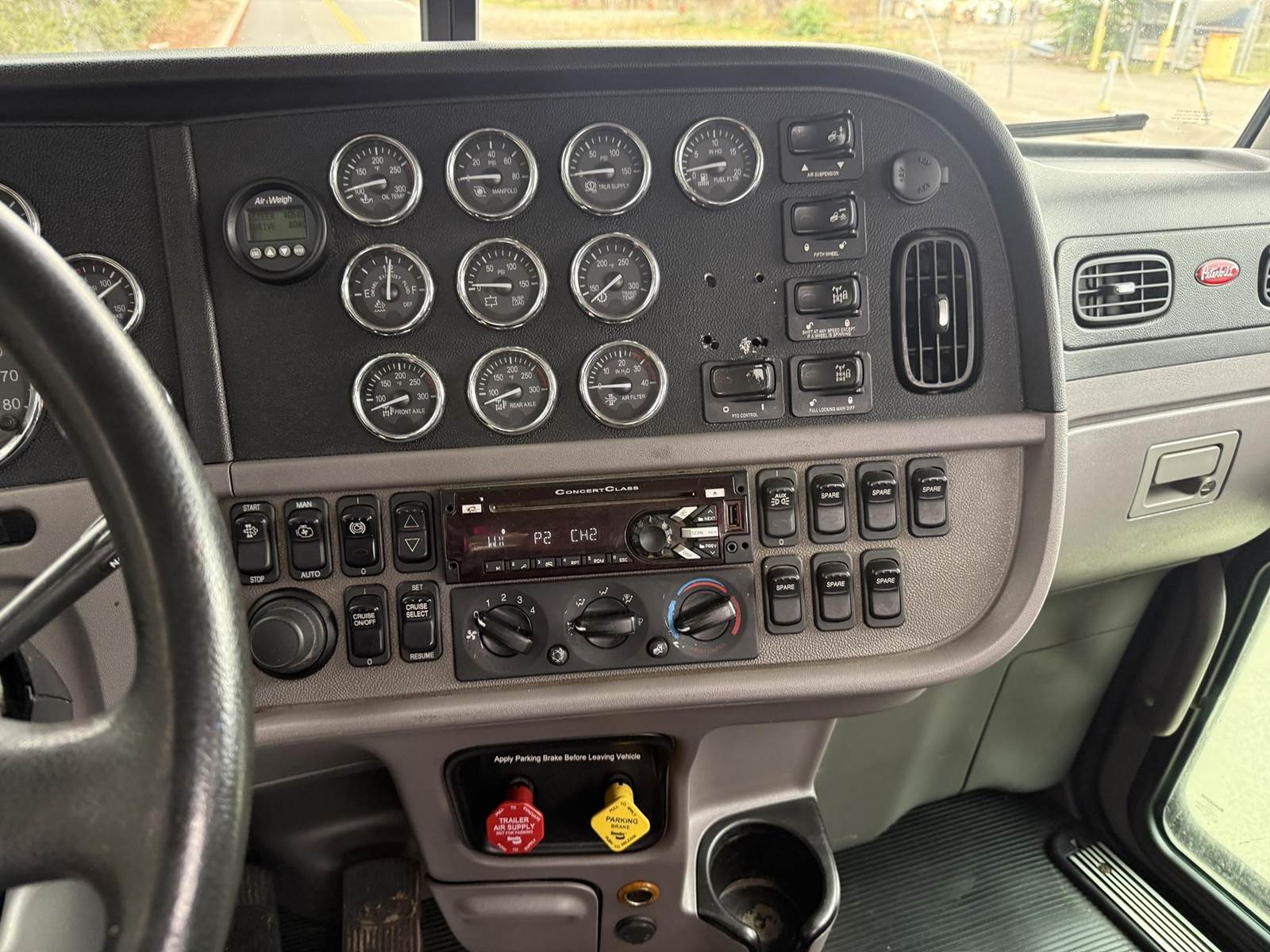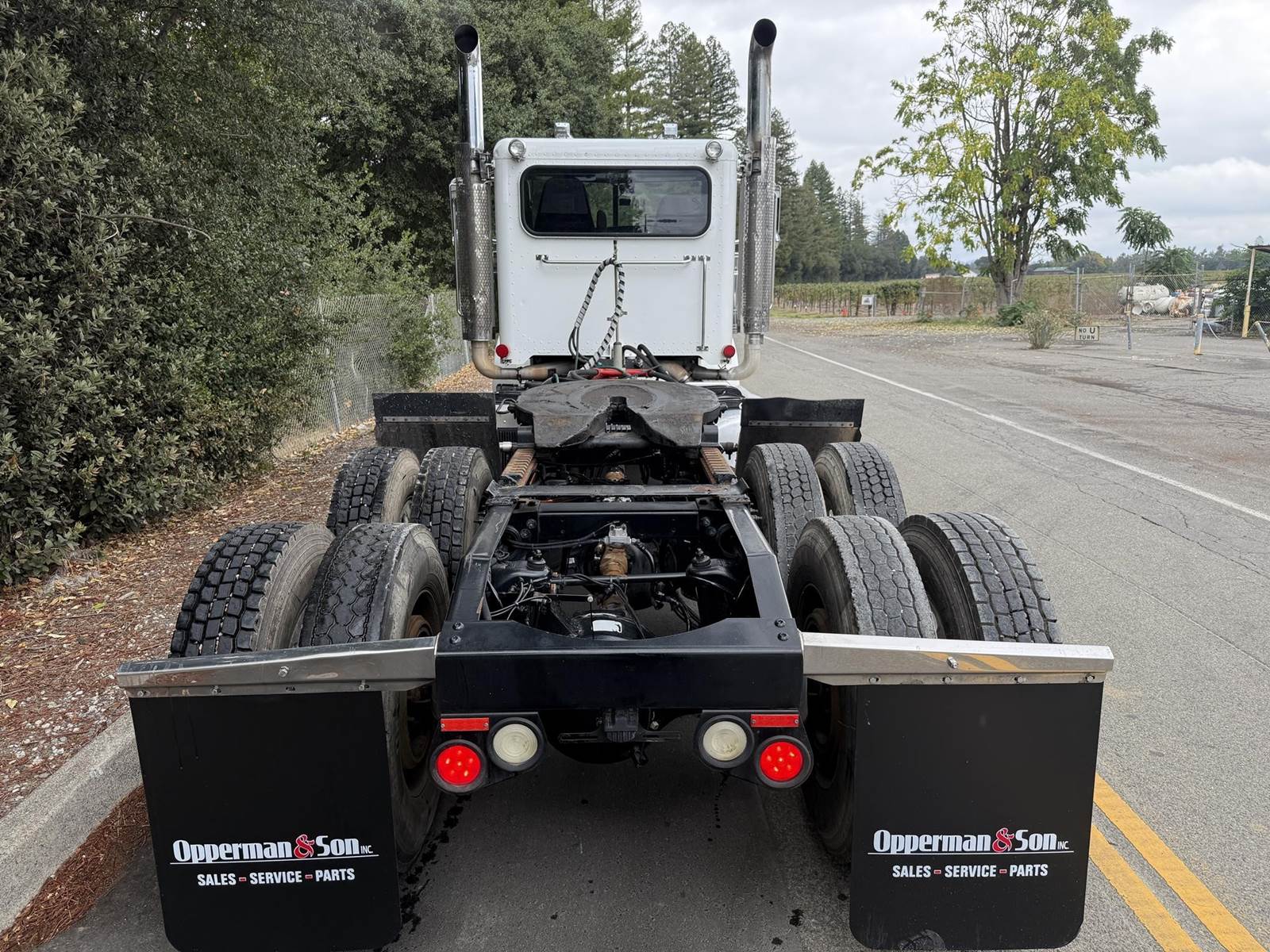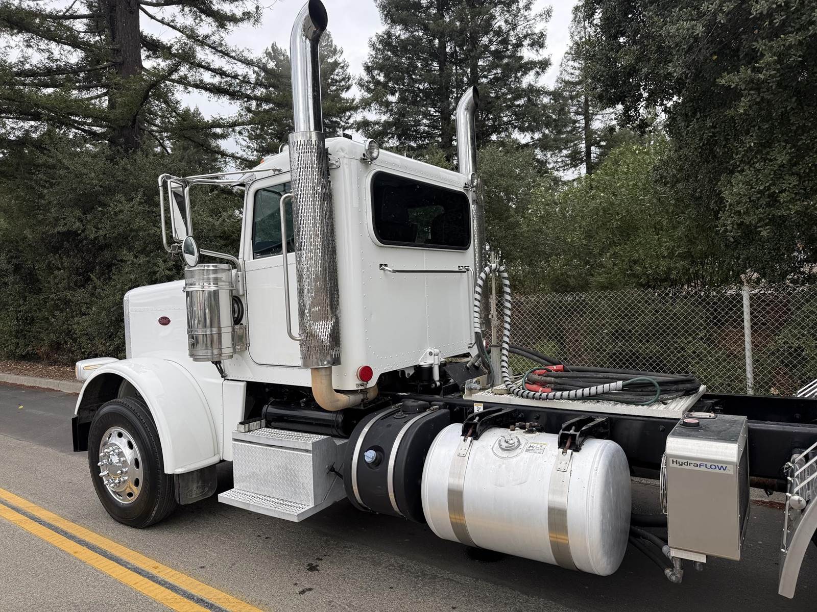 MX13 (485 HP), Engine Brake, Eaton Fuller 13-Speed Manual Transmission, 38,000# Dual Drive Rear Axles w/ Lockers, Peterbilt Air Leaf Suspension w/ Dash Deflate Switch, 13,200# Steer Axle w/ Power Steering, 235" W/B, 11R24.5 Tires on Peterbilt Slot All Aluminum Wheels, Disc Front Brakes, Cam Style Rear Brakes, L/H Aluminum Battery Box w/ Steps Under Driver Side Door, L/H Frame Mounted DEF, R/H 120 Gallon Aluminum Frame Mounted Fuel Tank w/ Steps, L/H 80 Gallon Aluminum Frame Mounted Fuel Tank, Chrome Bumper, Dual Stainless Steel Air Cleaners, Stainless Steel Visor, Dual Upright Chrome Exhaust w/ DPF, Chrome Front Bumper w/ Center Tow Pin, Twin Chrome Air Horns, Air Ride Cab, Aluminum Grip Strut Deck Plate, Stainless Quarter Fenders, Air Slide 5th Wheel, Peeper Window, Air Ride Seats, Tilt & Tele Steering Column, Gauge Package, Power Door Locks, Power Windows, Heated Mirrors, A/C, Cruise Control , Concert Class AM/FM Radio w/ CD Player......