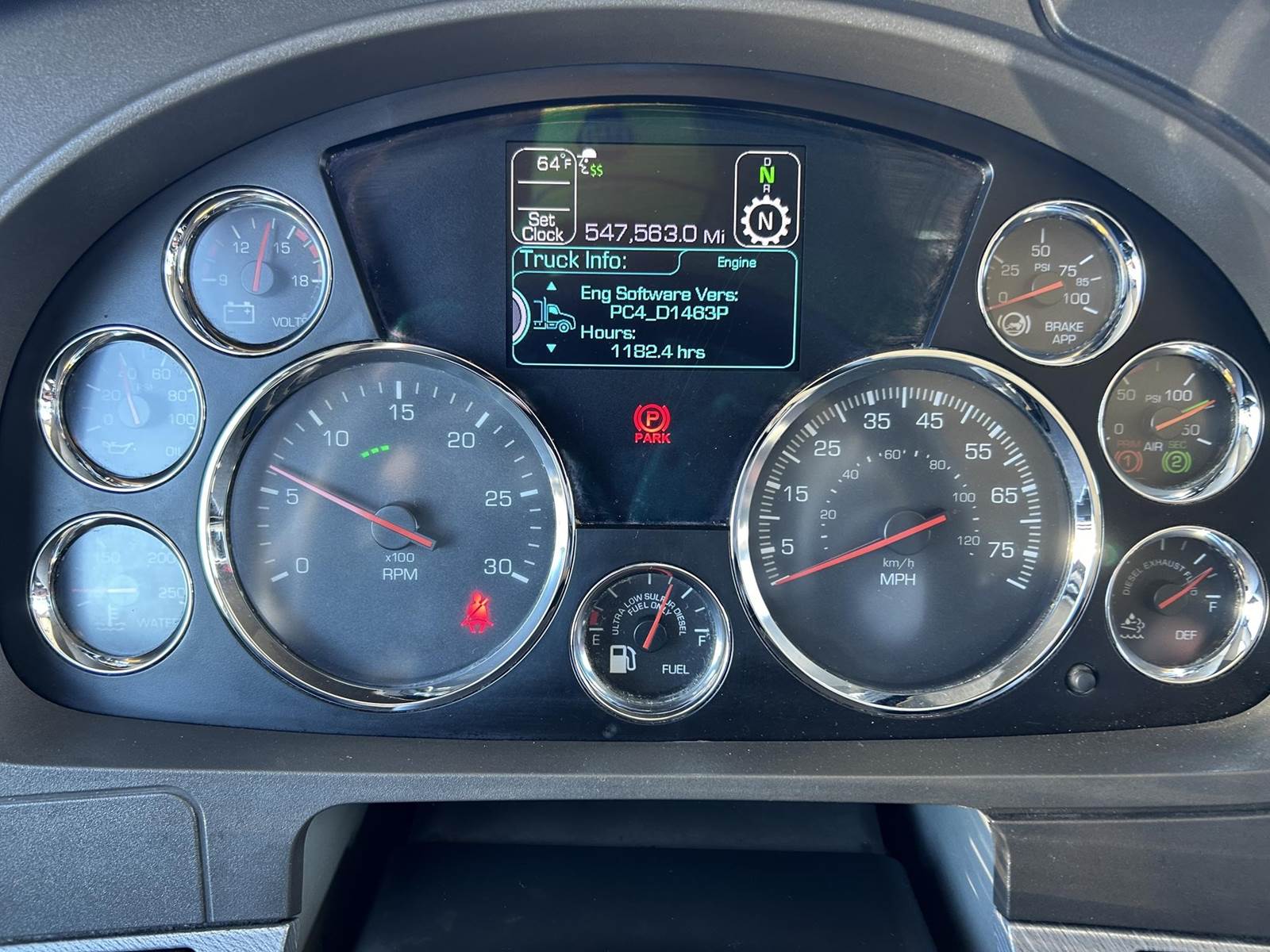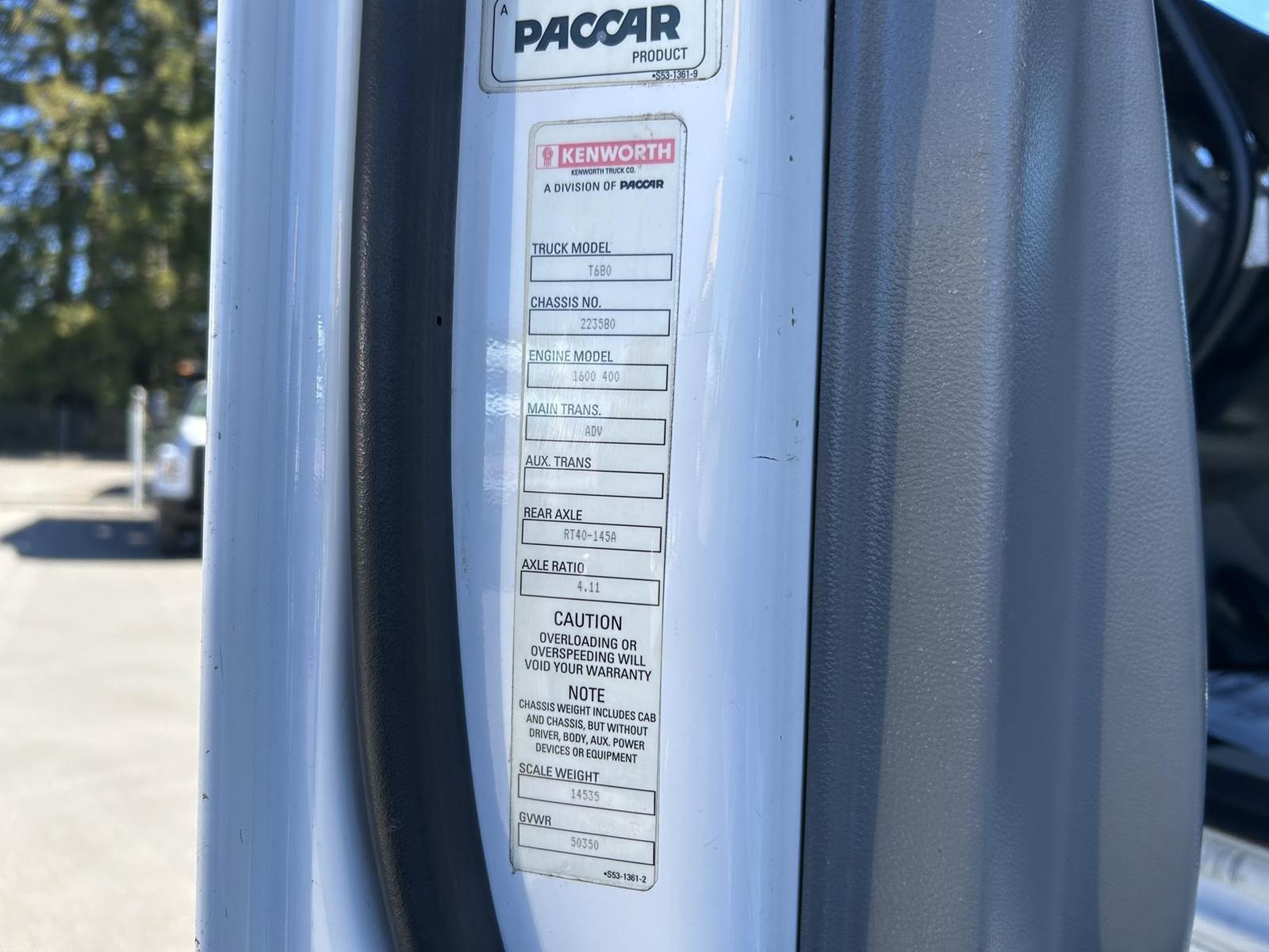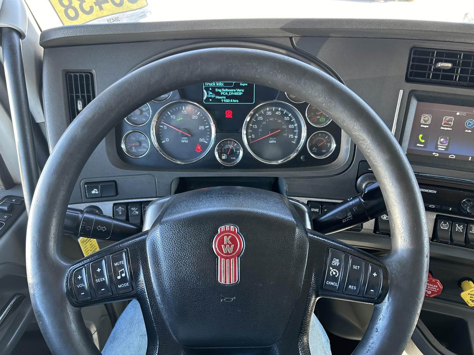 MX11 (400 HP), Engine Brake, Eaton-Fuller Advantage 10-Speed Automated Transmission, Meritor RT40-145A 38,000# Dual Drive Rear Axles (4.11 Ratio), Inter-Axle Differential, Paccar Flex Air Suspension w/ Dash Deflate Switch, 12,350# Steer Axle w/ Power Steering, 455/50R22.5 Super Single Drive Tires, 22.5 Steer Tires, Disc Brakes, L/H Aluminum Battery Box w/ Steps under Driver Side Door, Battery Disconnect Switch, L/H Frame Mounted DEF Tank, L/H Aluminum Frame Mounted 75 Gal. Fuel Tank, L/H & R/H Hood Mounted Spot Mirrors, Single R/H Upright Chrome Exhaust w/ Factory Installed DPF, R/H Aluminum Frame Mounted Tool Box, R/H Side Mounted GreaseJockey Auto-Greasing Unit, Stainless Steel Visor, Factory Air Ride Day Cab, DOT Rear Bumper w/ Pintle Hitch, Glad Hands & 7-Way Plug, Day Light Doors, Air Ride Seat, Tilt & Tele Steering Column, Power Door Locks, Power Windows, Power Mirrors, Heated Mirrors, A/C, Cruise Control, Lane-Keeping Assist w/ Dash Switch, Traction Control w/ Dash Switch, Hill-Start Assist w/ Dash Switch, Bendix Blindspotter w/ Dash Mounted Driver Interface Unit, Kenworth Nav+HD Infotainment System w/ AM/FM Radio/CD Player/Aux/Bluetooth/USB.....