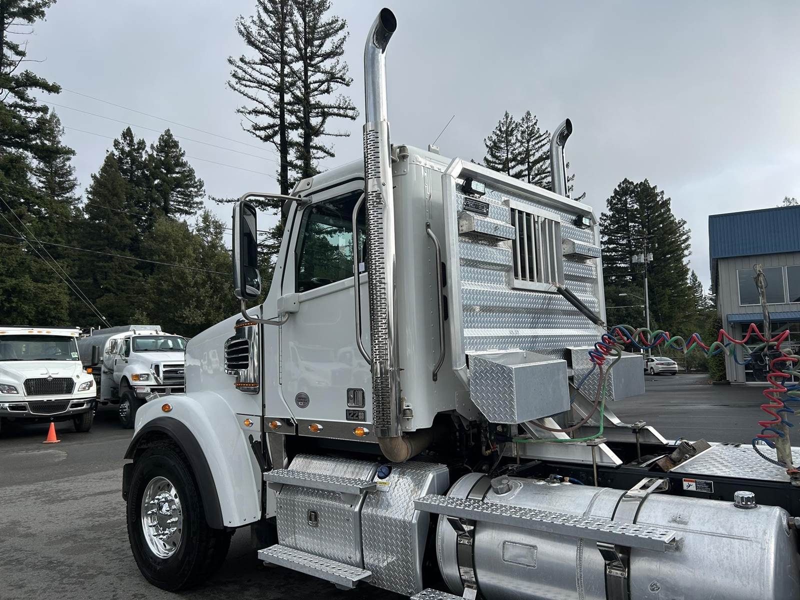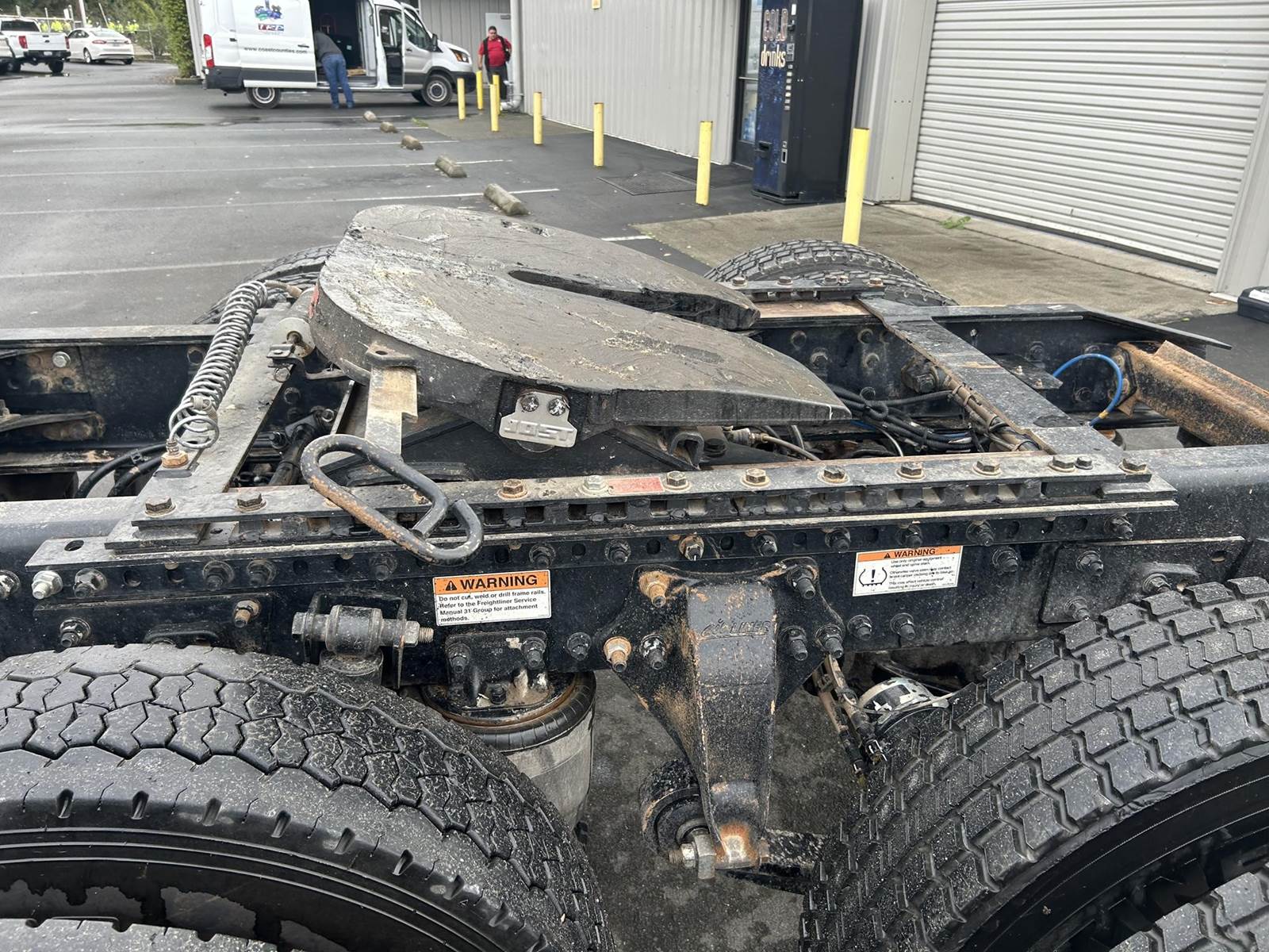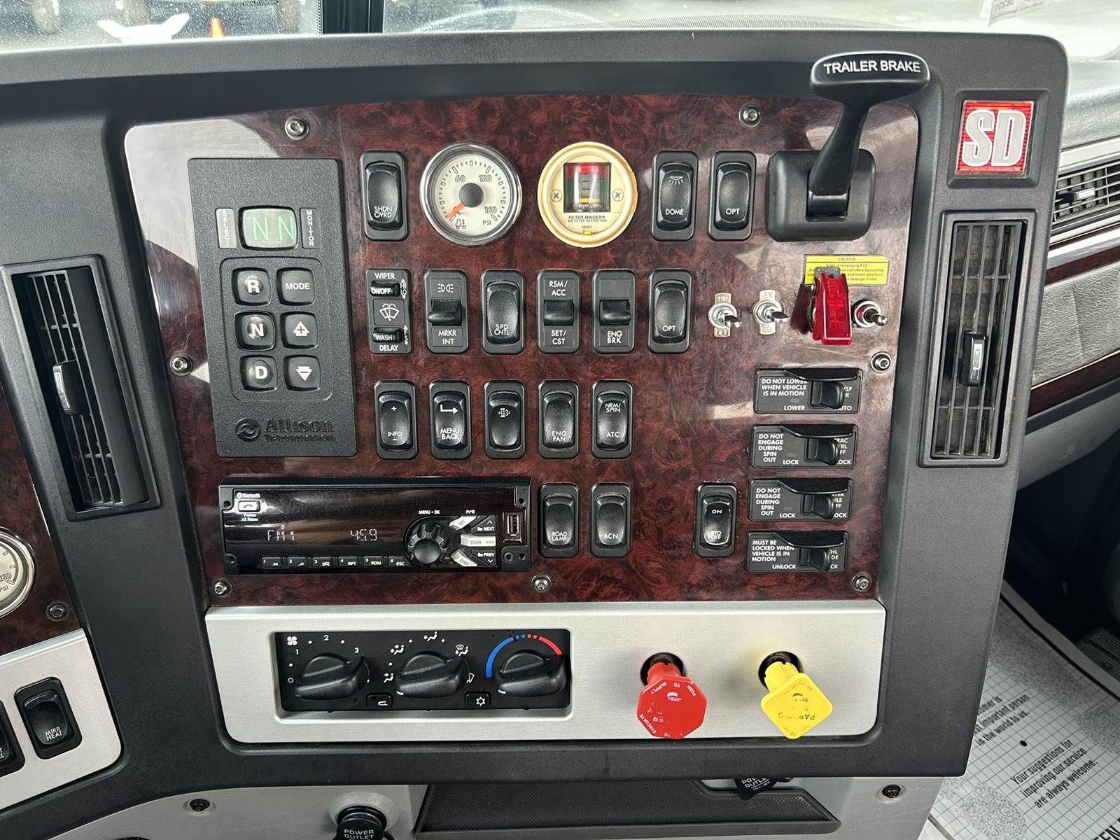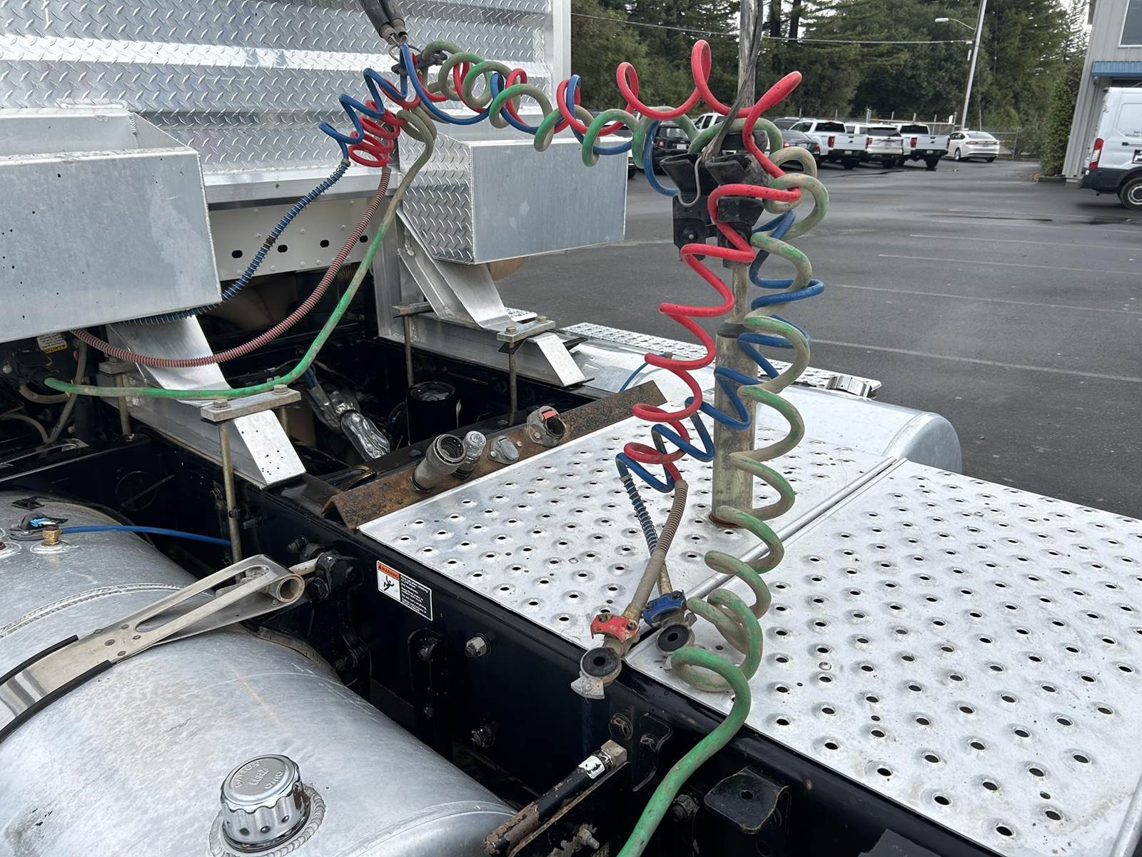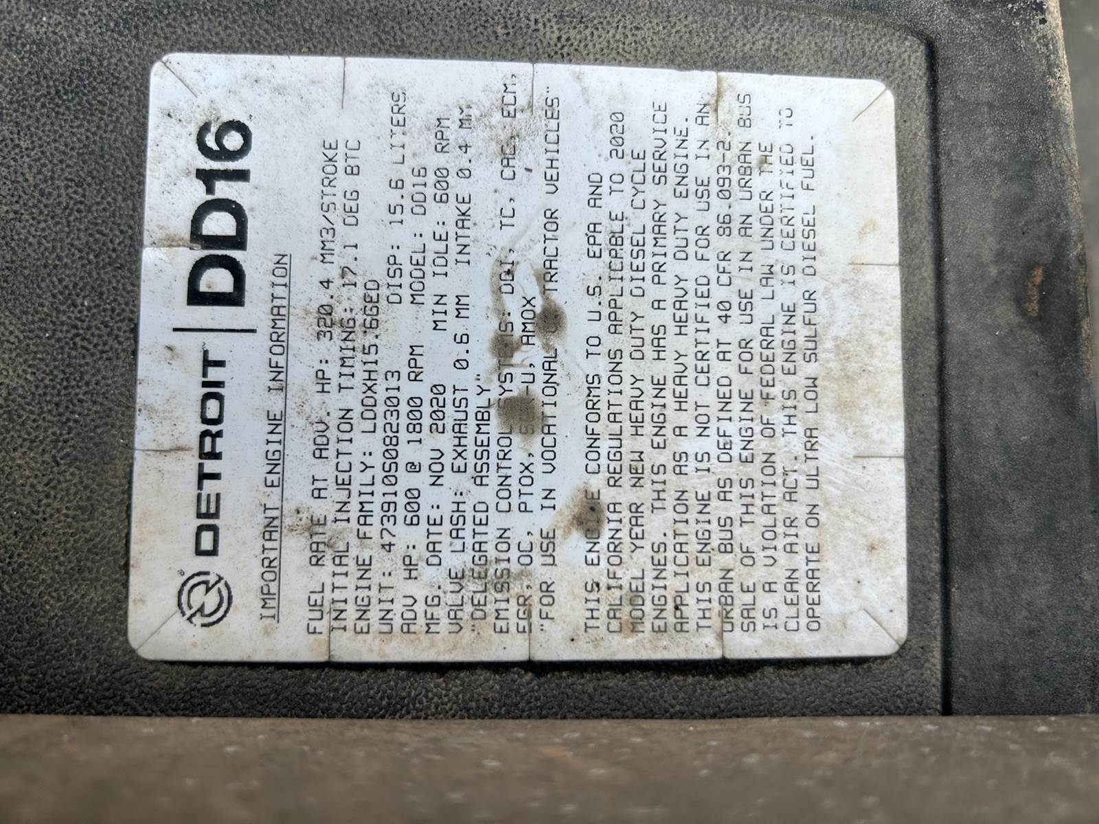 DD16 (560 HP), Engine Brake, Allison 4500RDS Automatic Transmission, Meritor RT-46-160P 46,000# Dual Drive Rear Axles (4.30 Ratio), Double Lockers, Air Liner Suspension w/ Dash Deflate Switch, Meritor MFS-14-143A 14,700# Steer Axle w/ Power Steering, 230" W/B, 11R22.5 Drive Tires, 315/80R22.5 Steer Tires, Disc Brakes, L/H Aluminum Battery Box w/ Steps under Driver Side Door, L/H Frame Mounted DEF Tank, L/H Aluminum Frame Mounted Split Tank w/ Steps (70 Gallon Fuel & Approx 50 Gallon Hydraulic), R/H 120 Gallon Aluminum Frame Mounted Fuel Tank w/ Steps, Chrome Bumper, Stainless Steel Visor, Dual Upright Chrome Exhaust w/ Factory Installed DPF, Dual Chrome Air Horns, Factory Air Ride Day Cab, ProTech Aluminum Headache Rack w/ Lockable Chain Hangers, Air Slide 5th Wheel, Air Ride Driver Seat, Tilt & Tele Steering Column, Battery Disconnect Switch, Power Door Locks, Power Windows, Power Mirrors, Heated Mirrors, A/C, Cruise Control, AM/FM Radio, C.B. Radio....2-Line Wet Kit.....