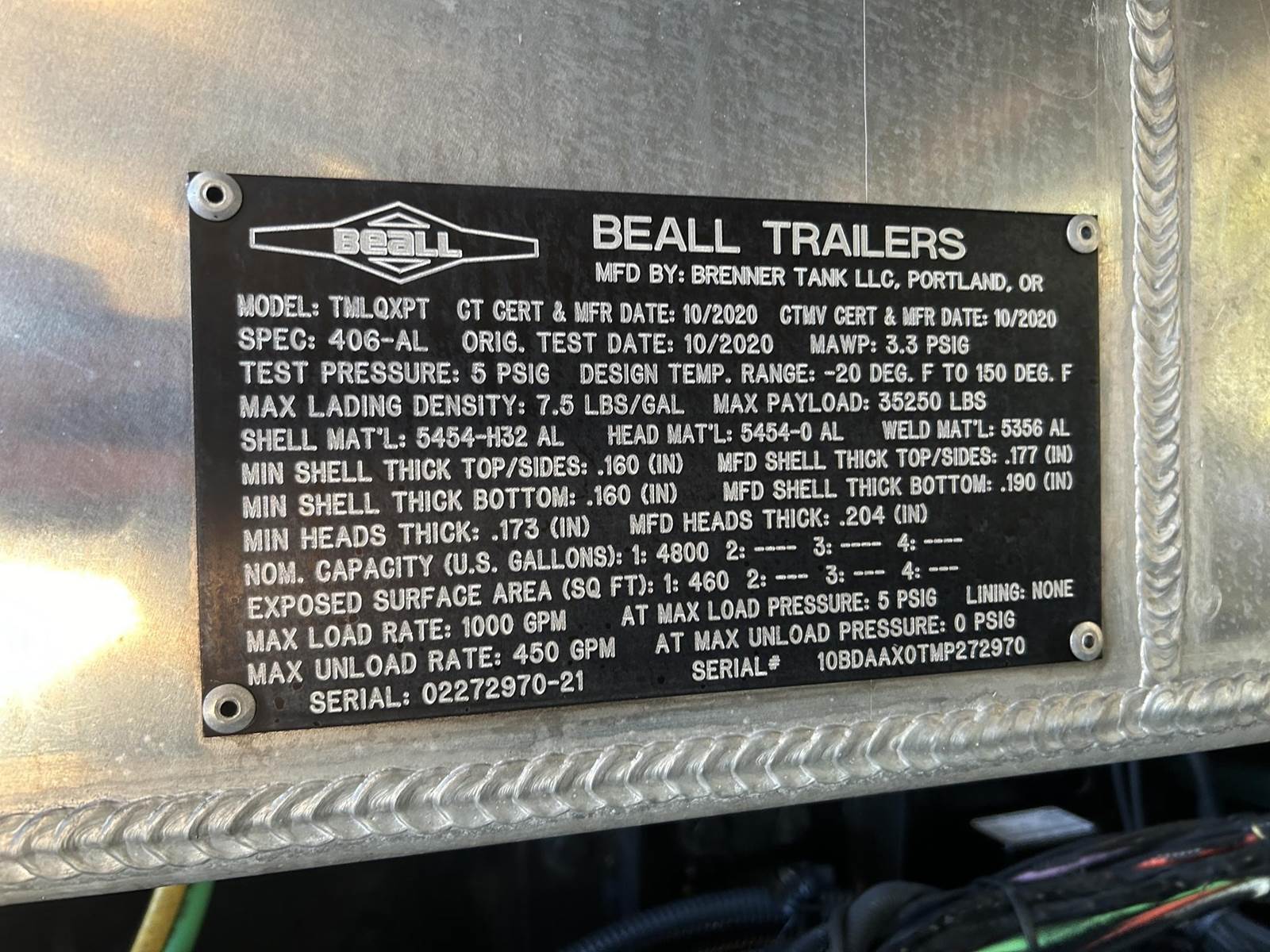 2021 BEALL 4800 GALLON SINGLE COMPARTMENT ALUMINUM TRUCK TANK
