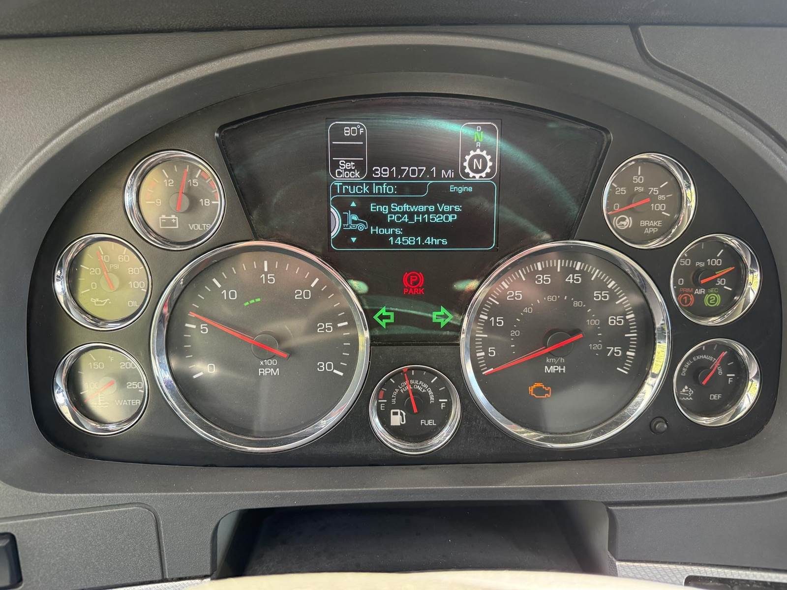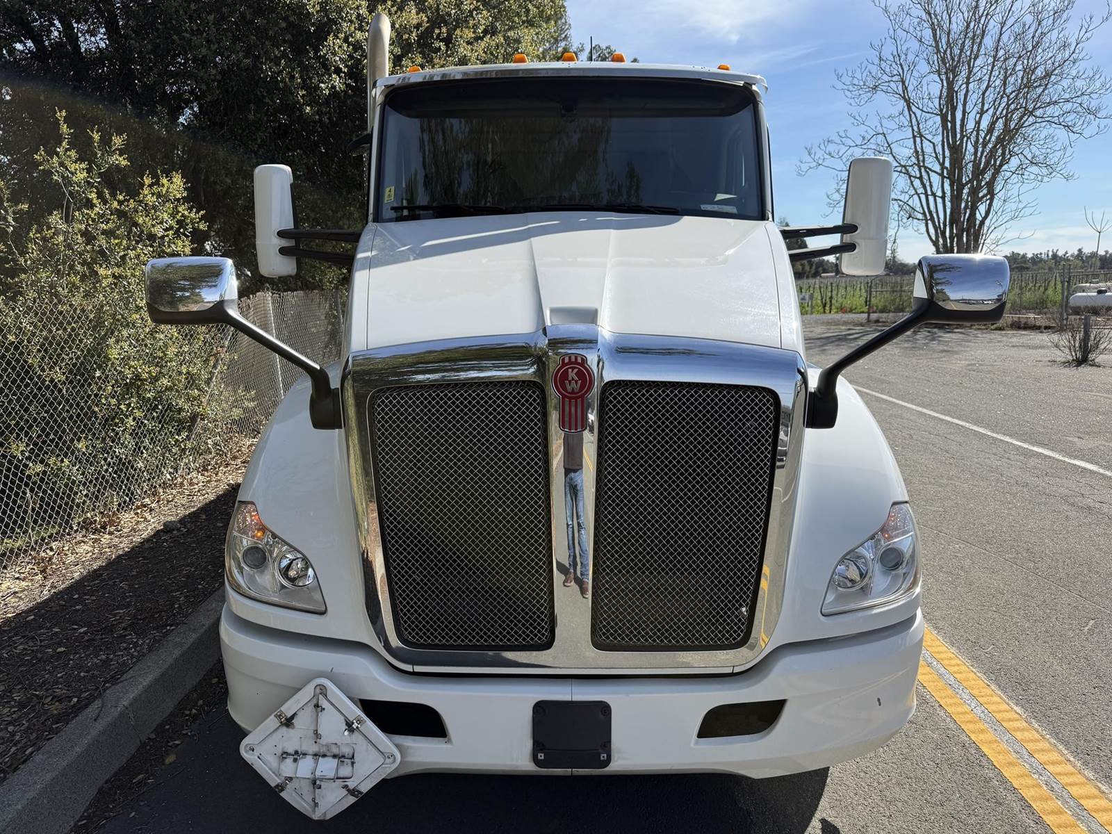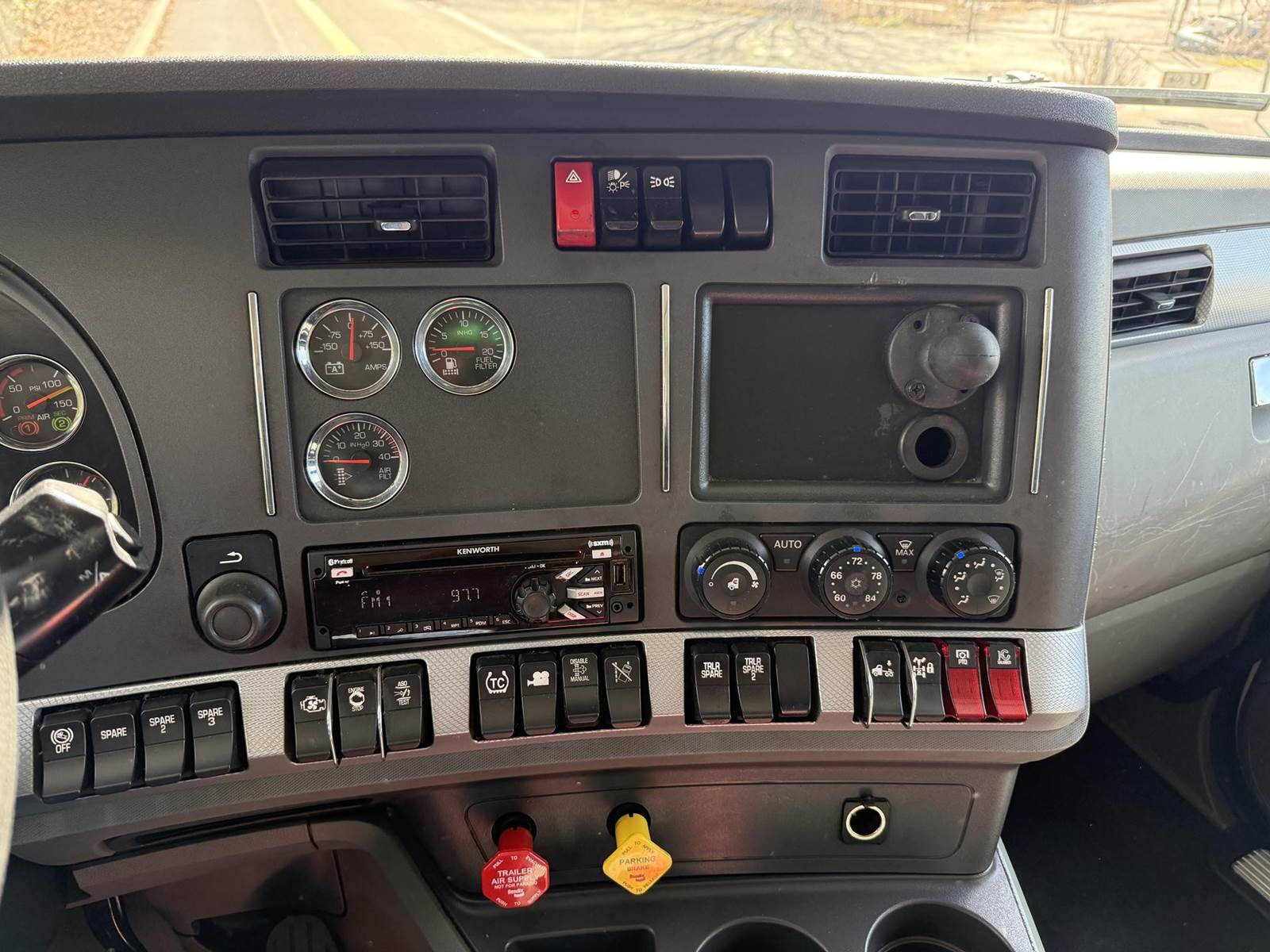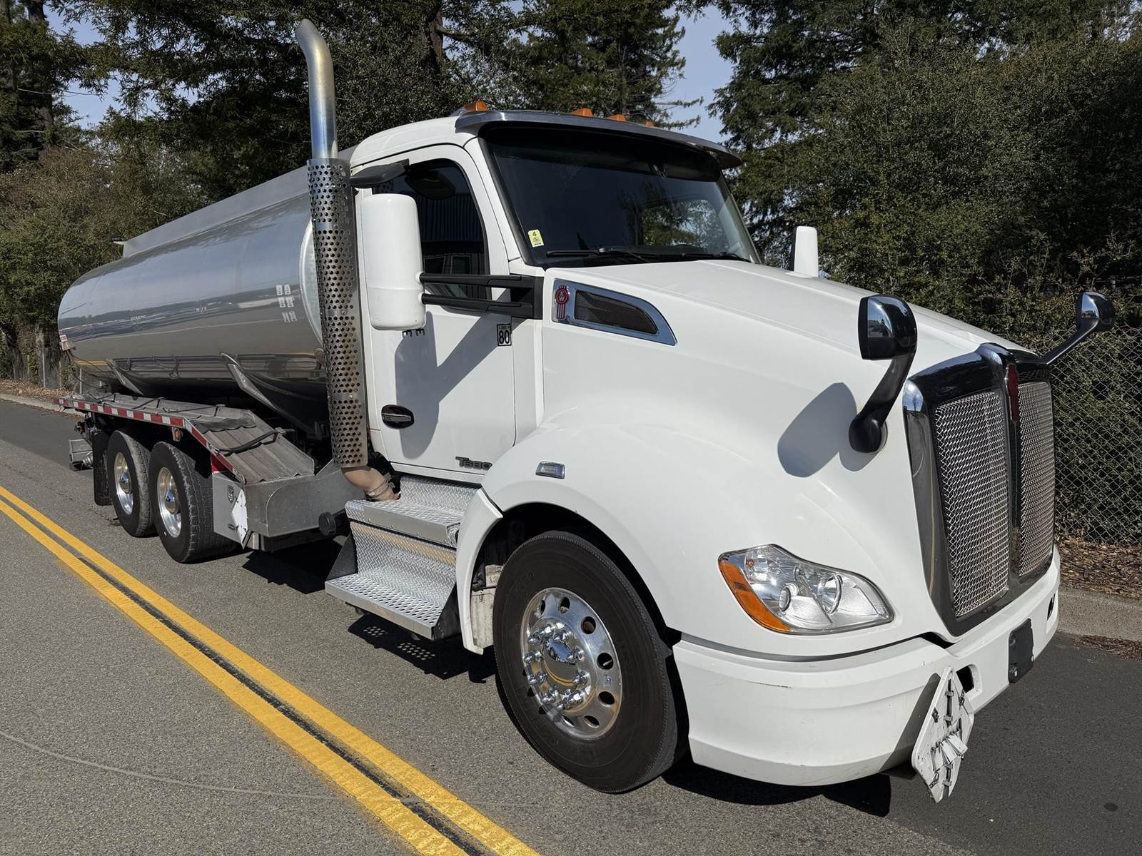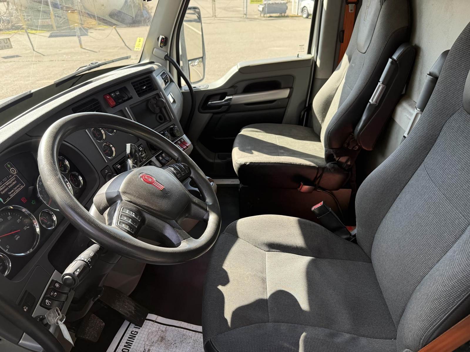 MX11 (400 HP), Engine Brake, Paccar P016F112C 12-Speed Automated Transmission, Meritor MP40-14X3 38,000# Dual Rear Drive Axles (3.55 Ratio), Inter-Axle Differential, Paccar Flex Air Suspension w/ Dash Deflate Switch, 12,350# Steer Axle w/ Power Steering, 455/55R22.5 Super Single Drive Tires, 22.5 Steer Tires, Disc Brakes, L/H Aluminum Battery Box w/ Steps under Driver Side Door, Battery Disconnect Switches, L/H Frame Mounted DEF Tank, L/H Aluminum Frame Mounted 75 Gal. Fuel Tank, L/H & R/H Hood Mounted Spot Mirrors, Single R/H Upright Chrome Exhaust w/ Factory Installed DPF, R/H Aluminum Frame Mounted Tool Box, R/H Side Mounted GreaseJockey Auto-Greasing Unit, Stainless Steel Visor, Factory Air Ride Day Cab, DOT Rear Bumper w/ Pintle Hitch, Glad Hands & 7-Way Plug, Day Light Doors, Air Ride Seat, Tilt & Tele Steering Column, Gauge Package, Power Door Locks, Power Windows, Power Mirrors, Heated Mirrors, A/C, Cruise Control, Lane Assist w/ Dash Switch, Traction Control w/ Dash Switch, Hill-Start Assist w/ Dash Switch, Bendix BlindSpotter, Kenworth AM/FM Radio w/ CD Player/Aux/USB/BlueTooth.....