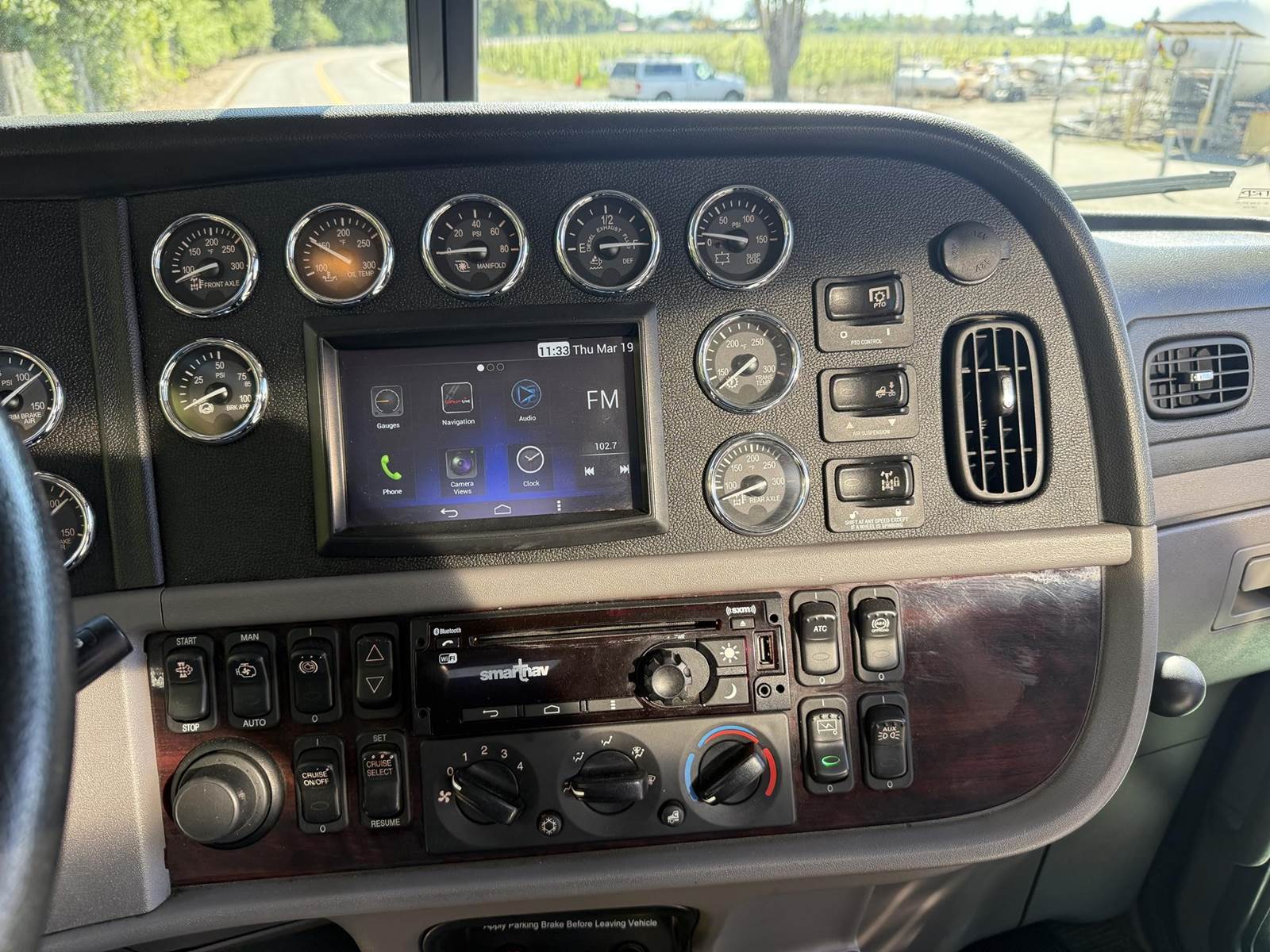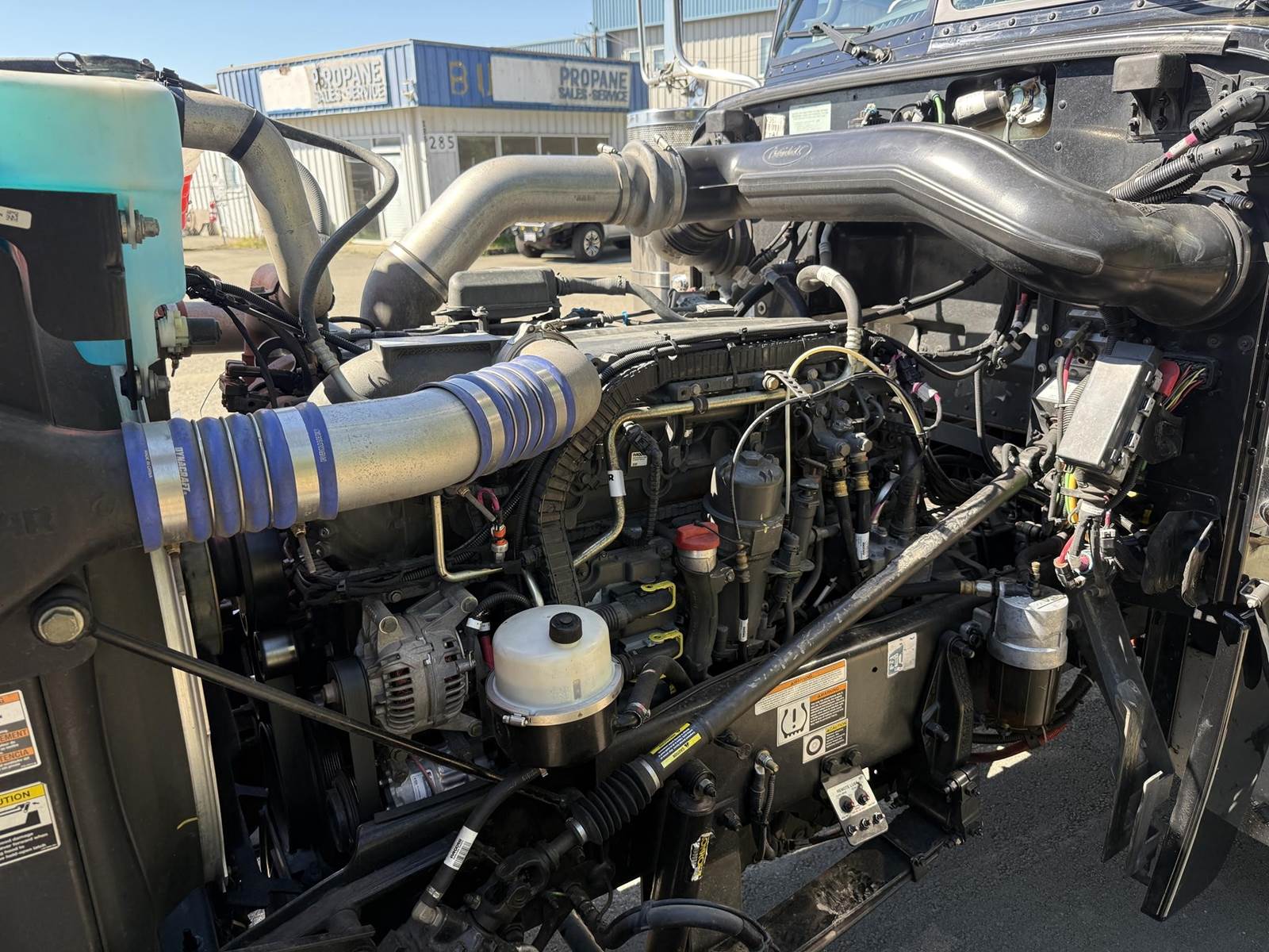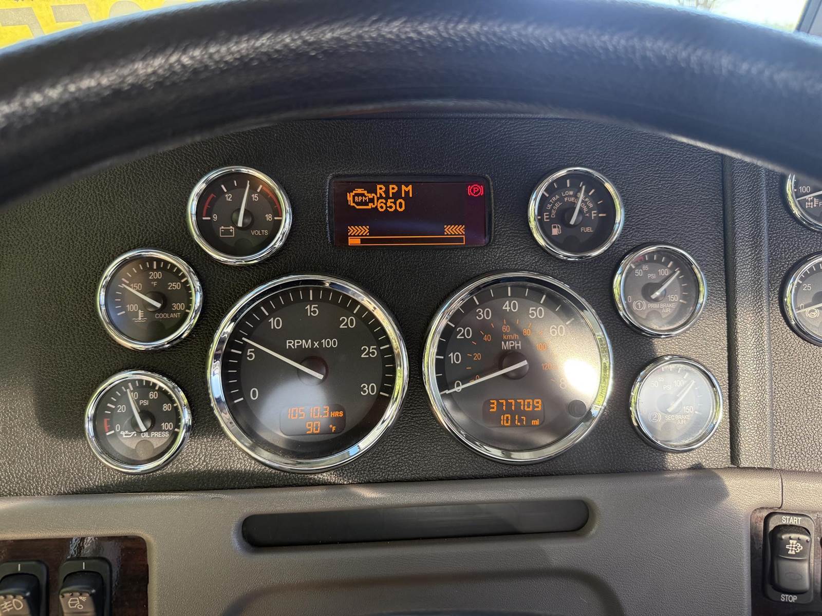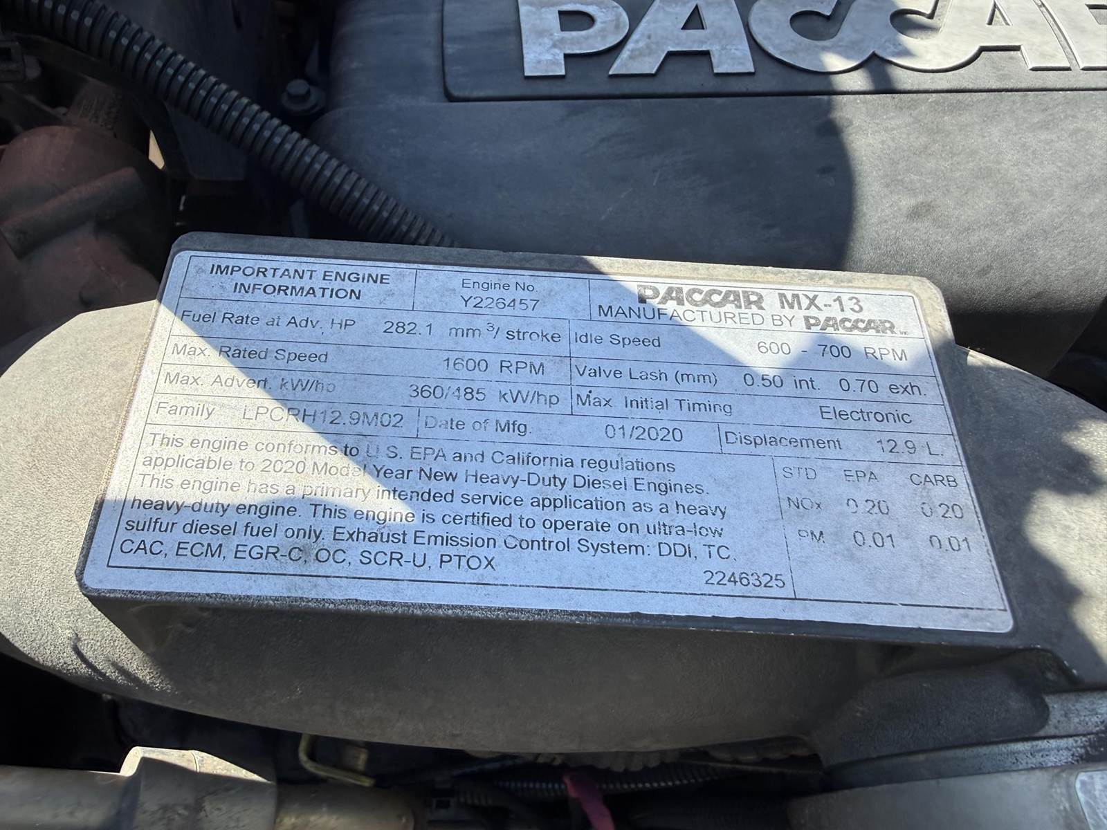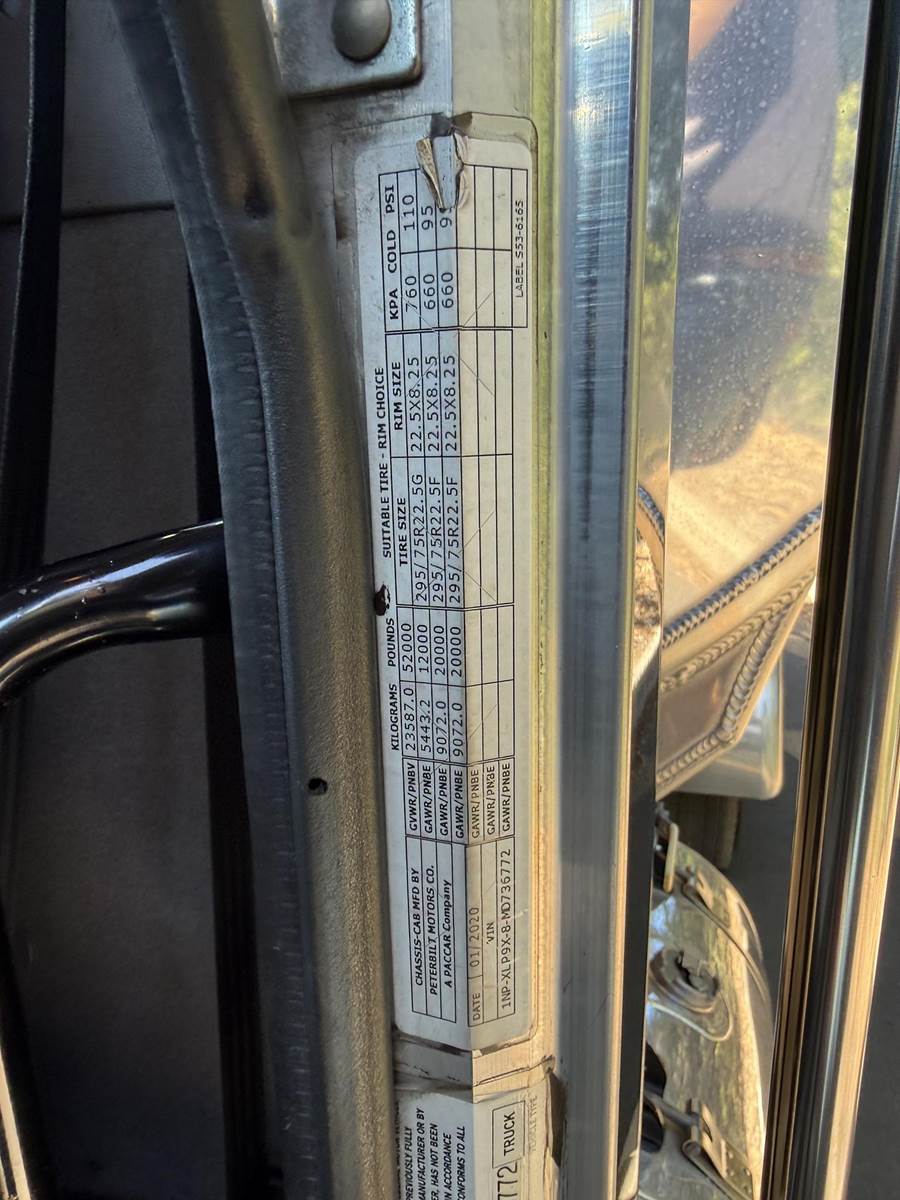 MX13 485 HP, Engine Brake, Eaton Fuller FAO16810C 10-Speed Manual Transmission, Paccar 40,000# Dual Drive Rear Axles (3.36 Ratio), Paccar Air Ride Suspension w/ Dash Deflate Switch, Dana Spicer E1322I 12,000# Steer Axle w/ Power Steering, 243" W/B, 445/50R22.5 Super Single Drive Tires, 295/75R22.5 Steer Tires, All Aluminum Wheels, Disc Brakes, L/H Aluminum Battery Box w/ Steps under Driver Side Door, L/H Frame Mounted DEF Tank, L/H 100 Gallon Aluminum Frame Mounted Fuel Tank, L/H Aluminum Frame Mounted Chock Block Holder, Single R/H Upright Crome Exhaust w/ Factory Installed DPF, R/H Aluminum Frame Mounted Fitting Box, Chrome Bumper, Dual Stainless Steel Air Cleaners, Stainless Steel Visor, Twin Chrome Air Horns, Factory Air Ride Day Cab, Full Aluminum Fenders over Drive Axles, Air Ride Driver Seat, Tilt & Tele Steering Column, Gauge Package, Power Door Locks, Power Windows, Power Mirrors, Heated Mirrors, A/C, Cruise Control, Peterbilt Entertainment System w/ Navigation, AM/FM Radio w/ CD Player.....