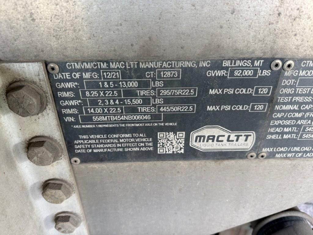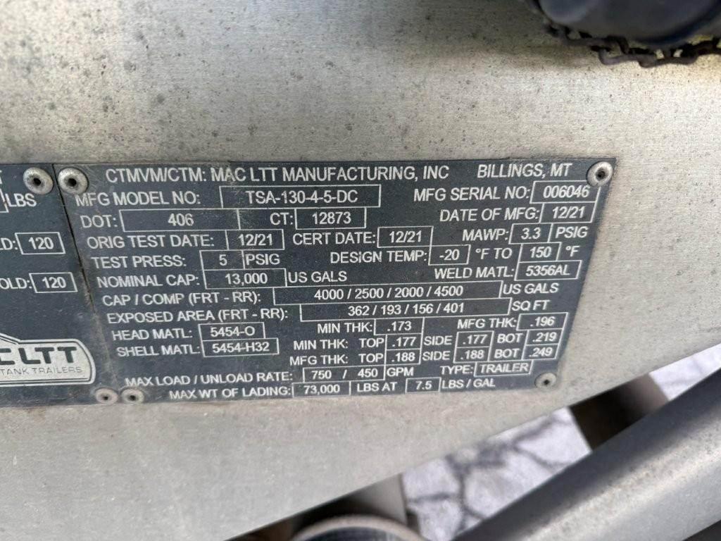 2022 MAC LTT 13,000 GALLON 4-COMPARTMENT 5-AXLE ALUMINUM SEMI TANK TRAILER