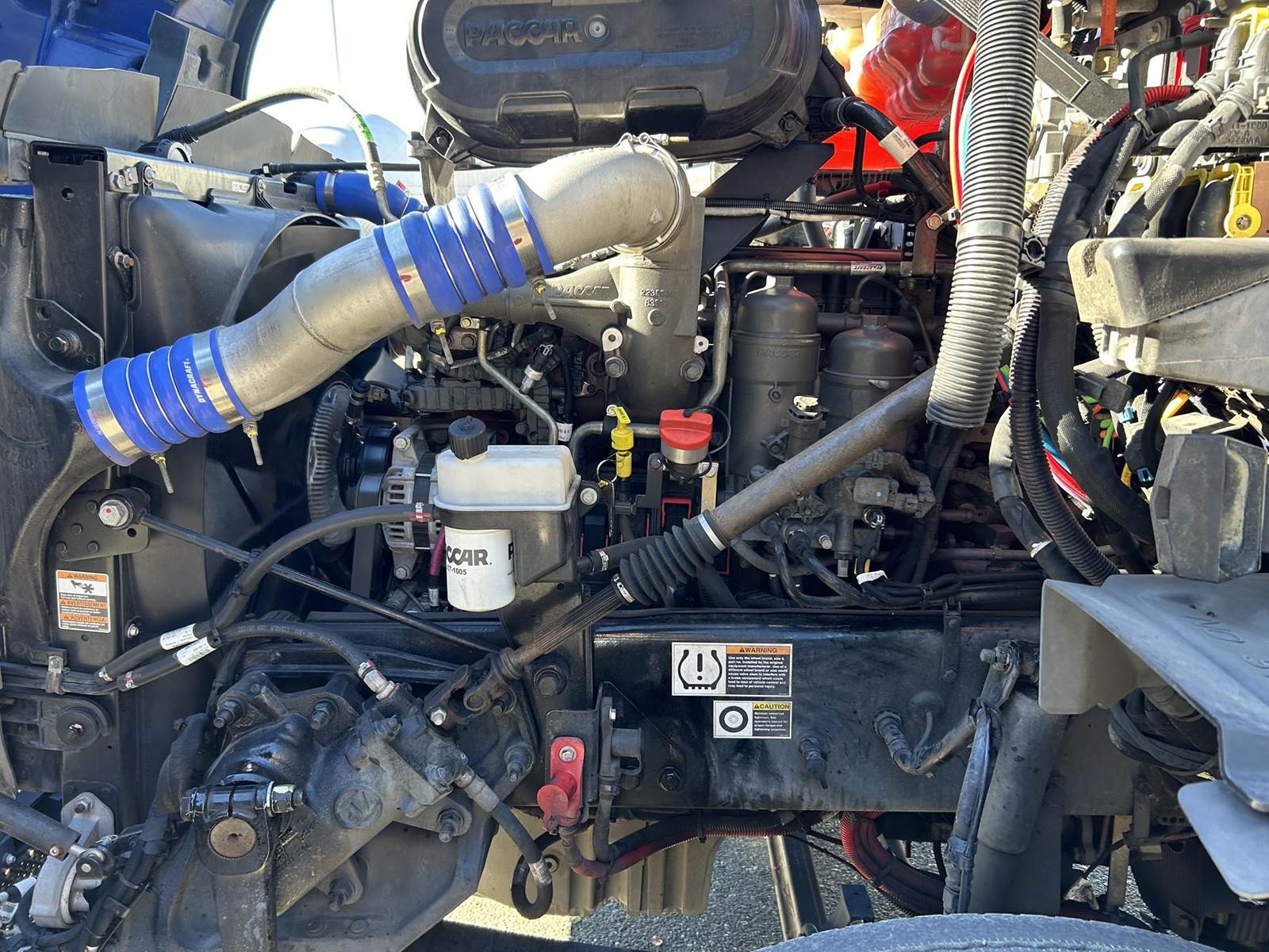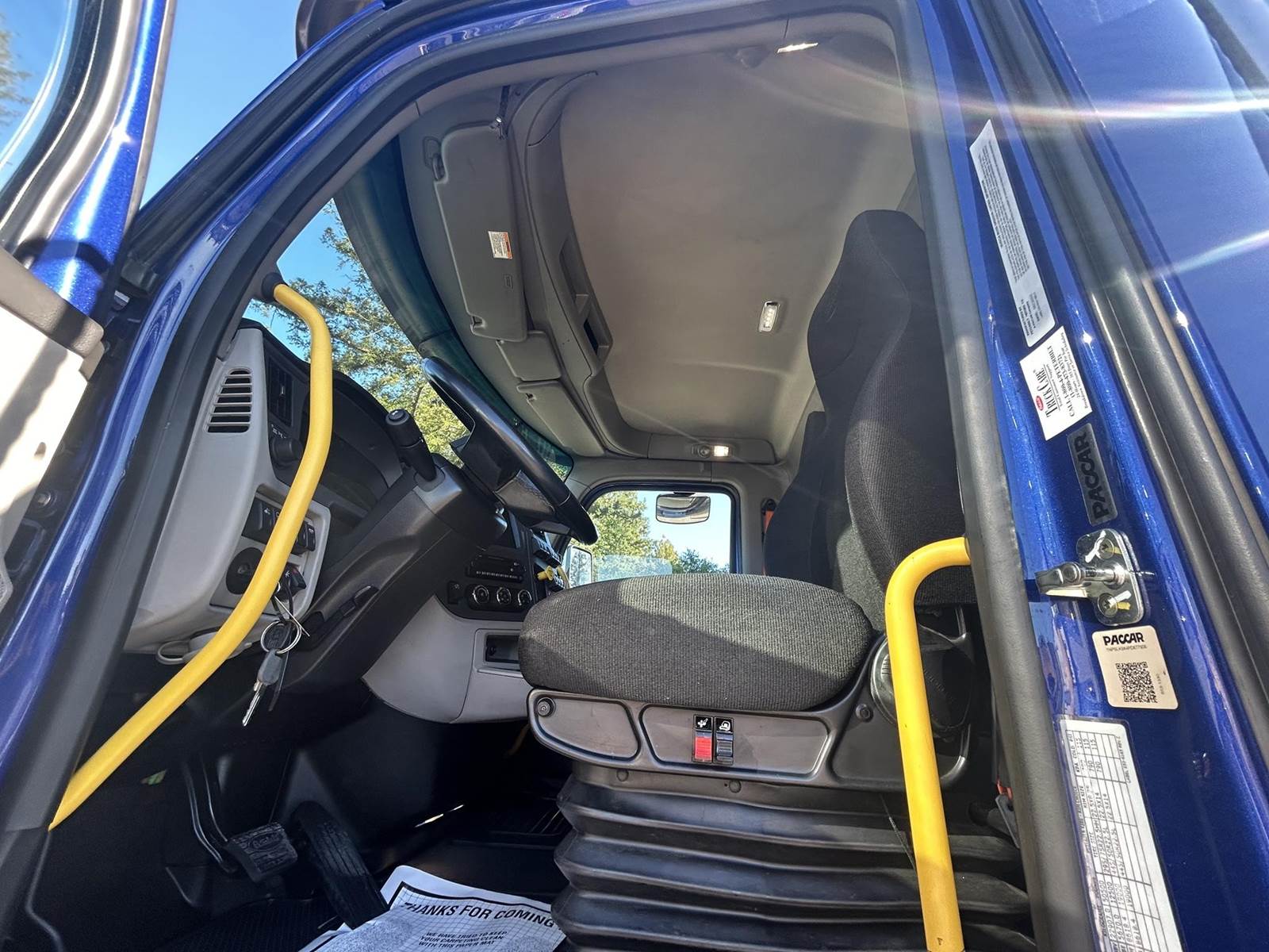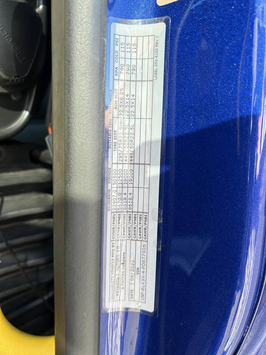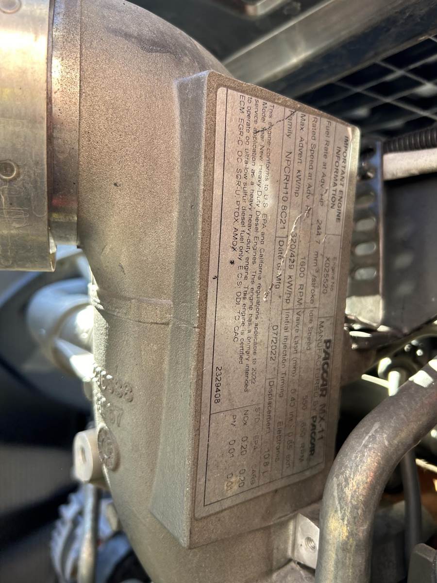 MX11 (429 HP), Engine Brake, Eaton Fuller FAO16810C-EA3 10-Speed Automatic Transmission, Dana Spicer DSH40 38,000# Dual Drive Rear Axles (3.90 Ratio), Paccar Air Ride Suspension w/ Dash Deflate Switch, Meritor MFS12E 12,500# Steer Axle w/ Power Steering, 445/50R22.5 Super Single Drive Tires, 275/80R22.5 Steer Tires, All Aluminum Wheels, Disc Brakes, 212" W/B, L/H Battery Box w/ Steps under Driver Side Door, L/H Frame Mounted DEF Tank, L/H 100 Gallon Aluminum Frame Mounted Fuel Tank, L/H & R/H Hood Mounted Spot Mirrors, Single R/H Upright Chrome Exhaust w/ Factory Installed DPF, Stainless Steel Visor, Factory Air Ride Day Cab, Full Aluminum Fenders over Drive Axles, DOT Bumper @ Rear w/ Pintle Hitch, Gladhands & 7-Way Plug, Air Ride Seat, Tilt & Tele Steering Column, Power Door Locks, Power Windows, Power Mirrors, Heated Mirrors, A/C, Cruise Control, Business Class AM/FM Radio.....