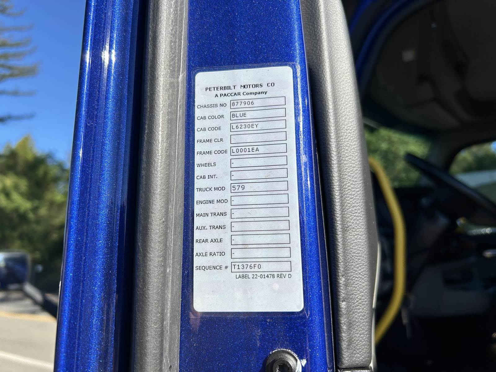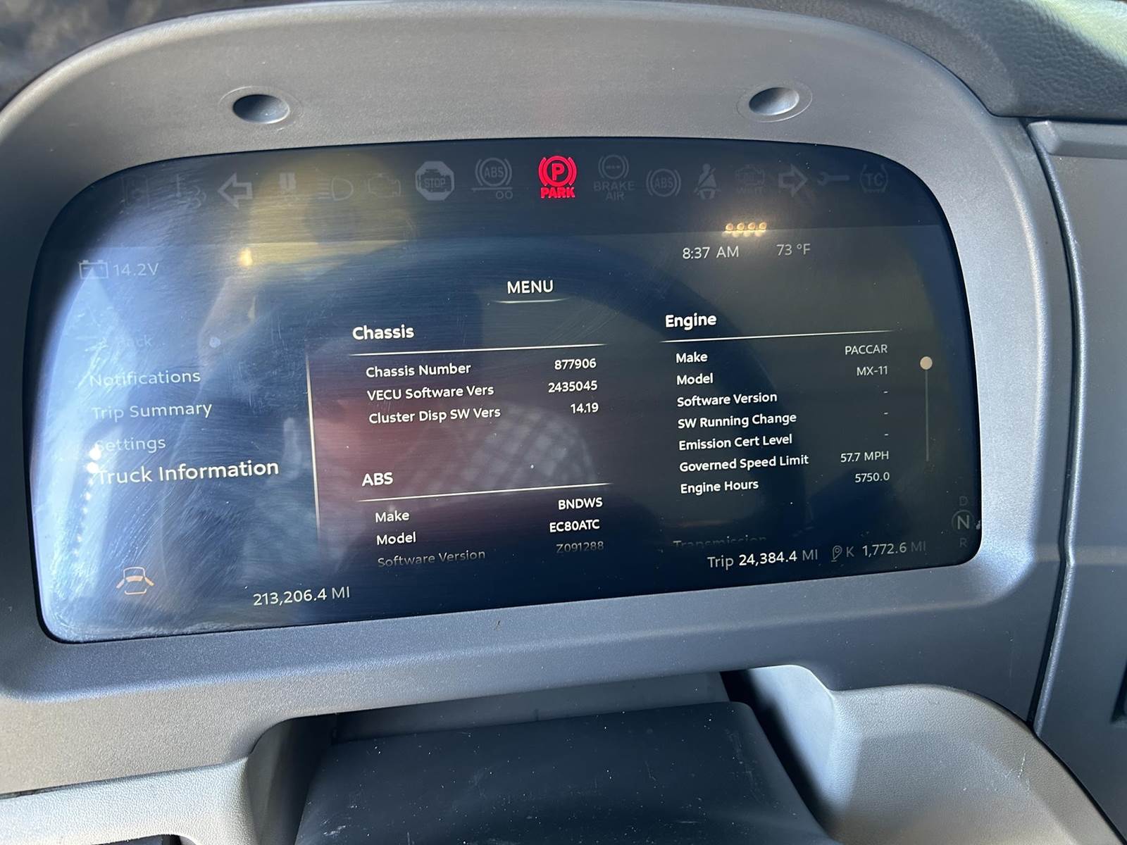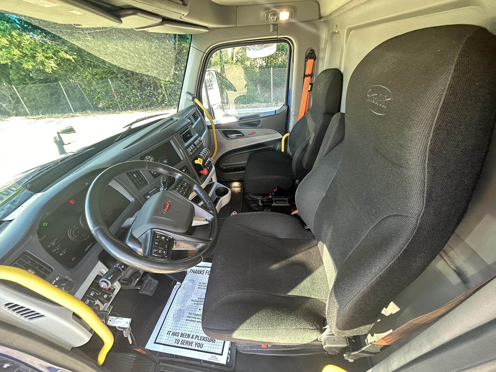 MX11 (429 HP), Engine Brake, Eaton Fuller FAO16810C-EA3 10-Speed Automatic Transmission, Dana Spicer DSH40 38,000# Dual Drive Rear Axles (3.90 Ratio), Paccar Air Ride Suspension w/ Dash Deflate Switch, Meritor MFS12E 12,500# Steer Axle w/ Power Steering, 445/50R22.5 Super Single Drive Tires, 275/80R22.5 Steer Tires, All Aluminum Wheels, Disc Brakes, 212" W/B, L/H Battery Box w/ Steps under Driver Side Door, L/H Frame Mounted DEF Tank, L/H 100 Gallon Aluminum Frame Mounted Fuel Tank, L/H & R/H Hood Mounted Spot Mirrors, Single R/H Upright Chrome Exhaust w/ Factory Installed DPF, Stainless Steel Visor, Factory Air Ride Day Cab, Full Aluminum Fenders over Drive Axles, DOT Bumper @ Rear w/ Pintle Hitch, Gladhands & 7-Way Plug, Air Ride Seat, Tilt & Tele Steering Column, Power Door Locks, Power Windows, Power Mirrors, Heated Mirrors, A/C, Cruise Control, Business Class AM/FM Radio.....