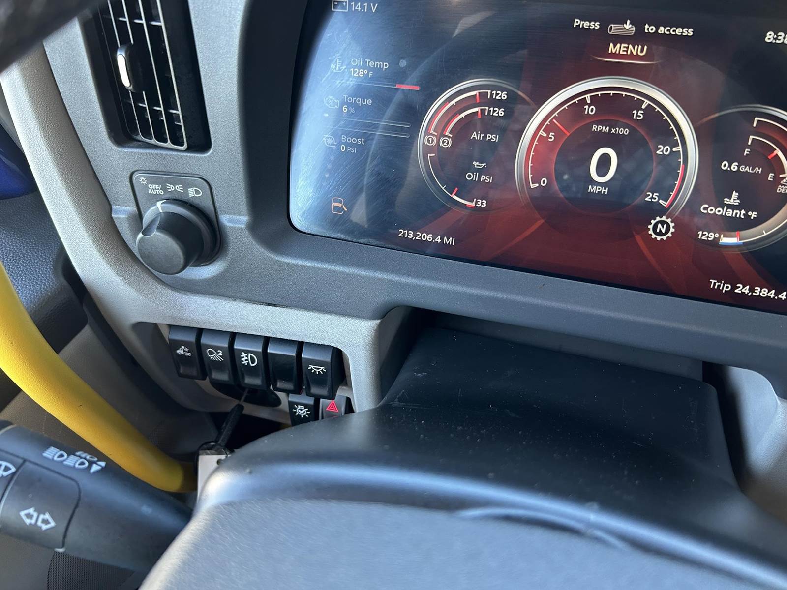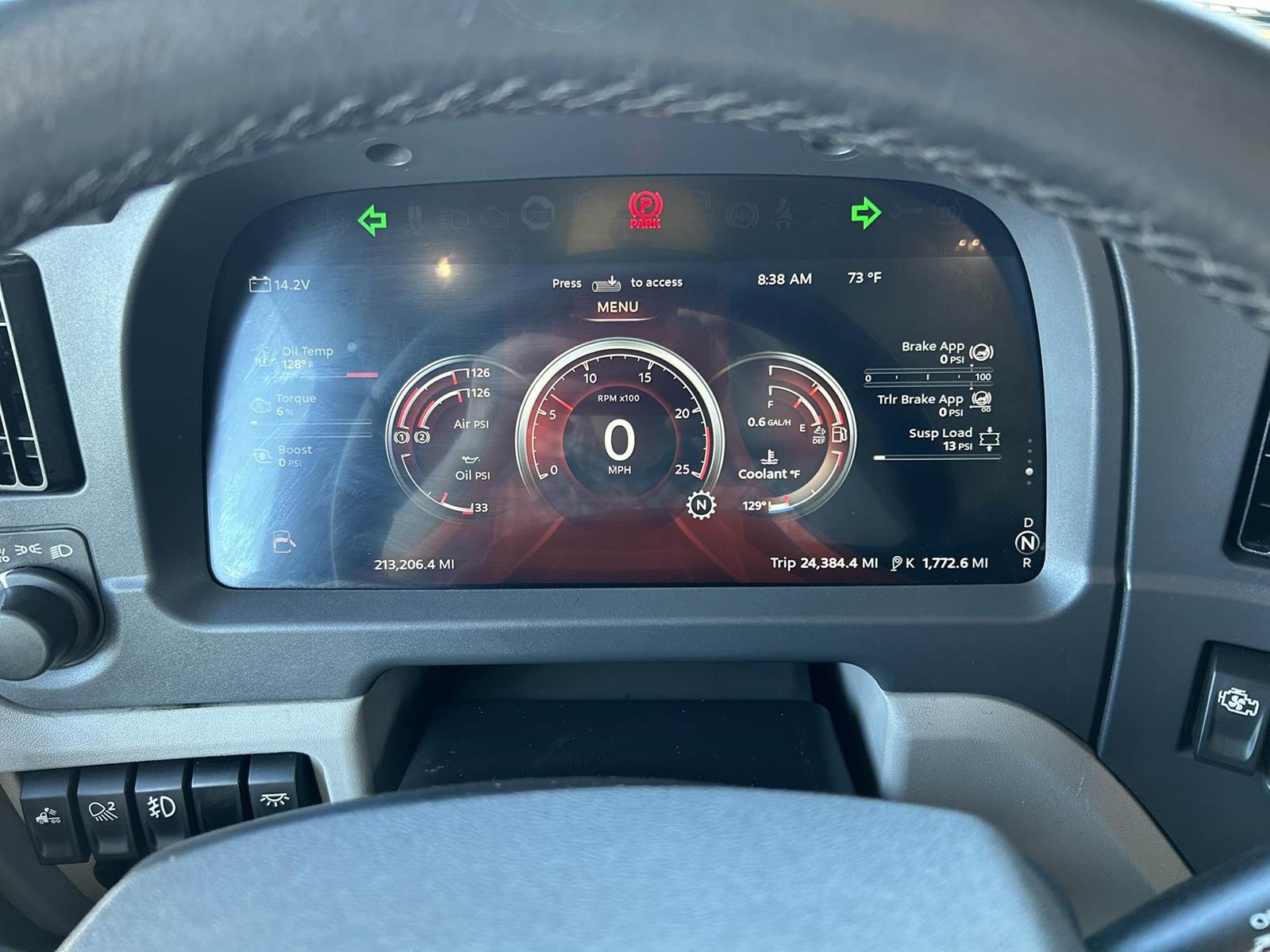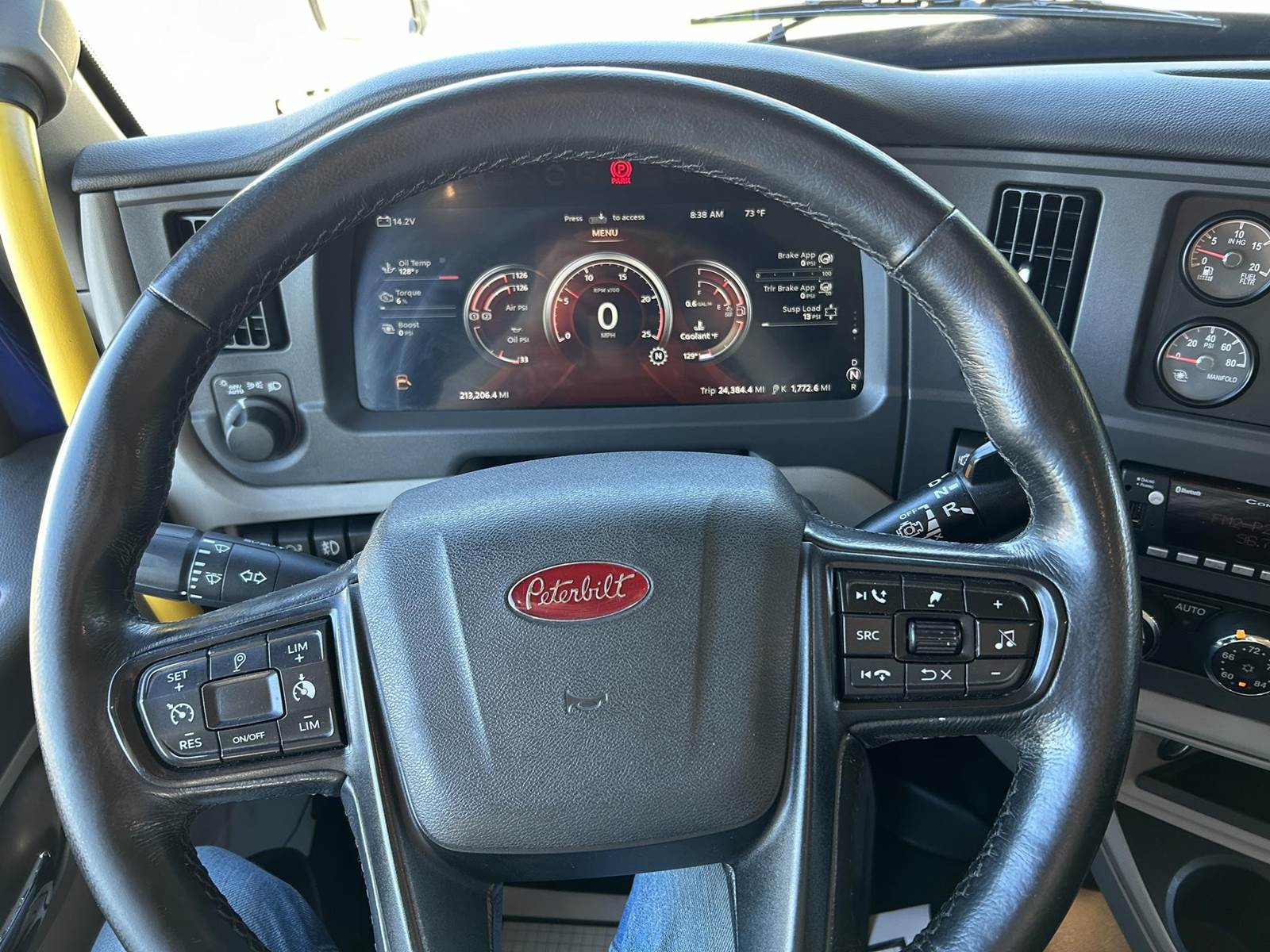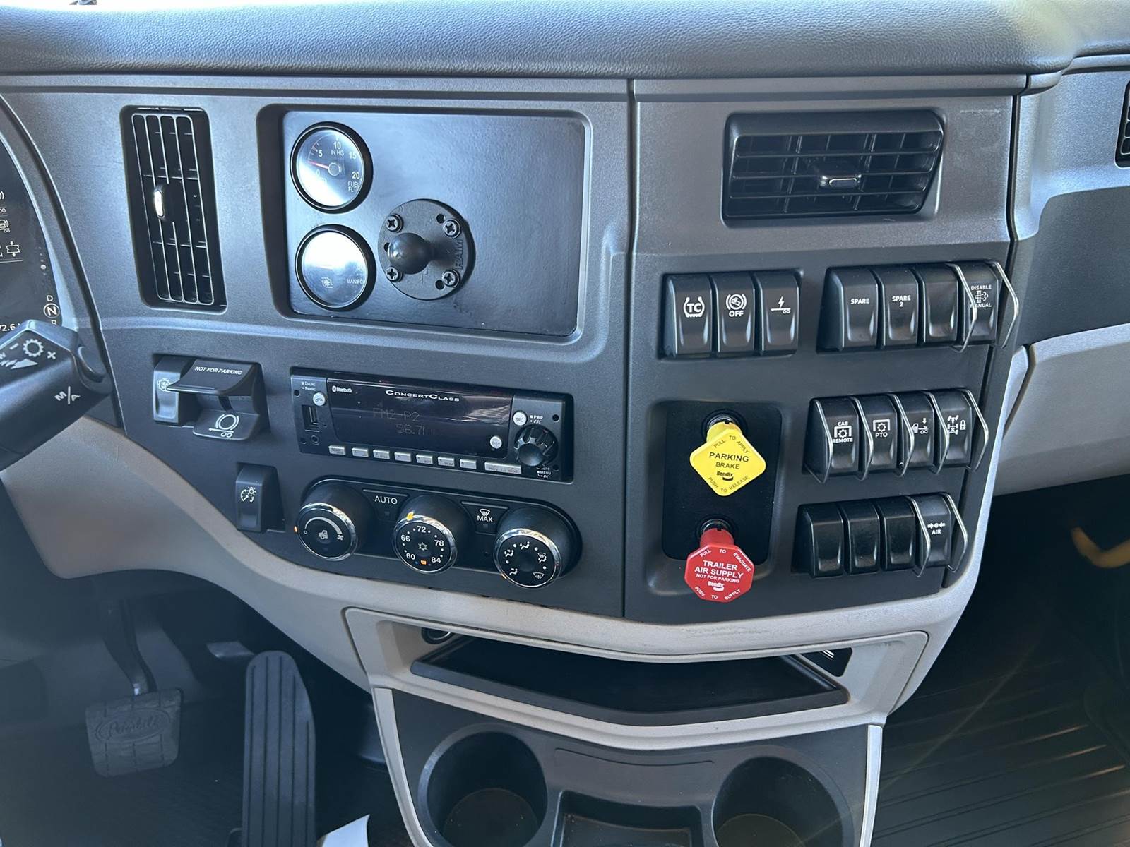 MX11 (429 HP), Engine Brake, Eaton Fuller FAO16810C-EA3 10-Speed Automatic Transmission, Dana Spicer DSH40 38,000# Dual Drive Rear Axles (3.90 Ratio), Paccar Air Ride Suspension w/ Dash Deflate Switch, Meritor MFS12E 12,500# Steer Axle w/ Power Steering, 445/50R22.5 Super Single Drive Tires, 275/80R22.5 Steer Tires, All Aluminum Wheels, Disc Brakes, 212" W/B, L/H Battery Box w/ Steps under Driver Side Door, L/H Frame Mounted DEF Tank, L/H 100 Gallon Aluminum Frame Mounted Fuel Tank, L/H & R/H Hood Mounted Spot Mirrors, Single R/H Upright Chrome Exhaust w/ Factory Installed DPF, Stainless Steel Visor, Factory Air Ride Day Cab, Full Aluminum Fenders over Drive Axles, DOT Bumper @ Rear w/ Pintle Hitch, Gladhands & 7-Way Plug, Air Ride Seat, Tilt & Tele Steering Column, Power Door Locks, Power Windows, Power Mirrors, Heated Mirrors, A/C, Cruise Control, Business Class AM/FM Radio.....