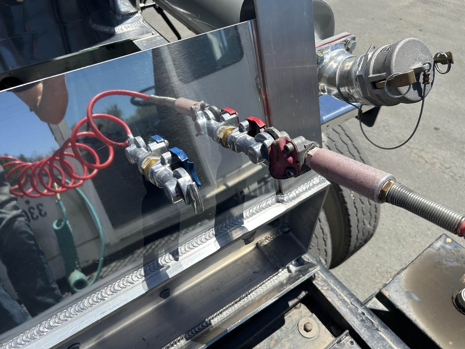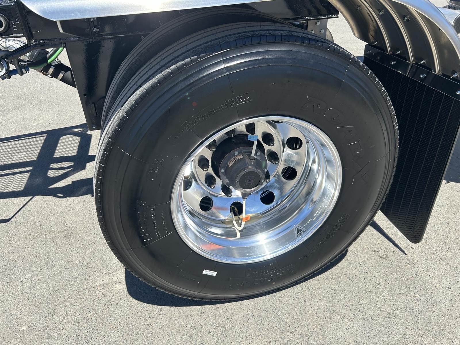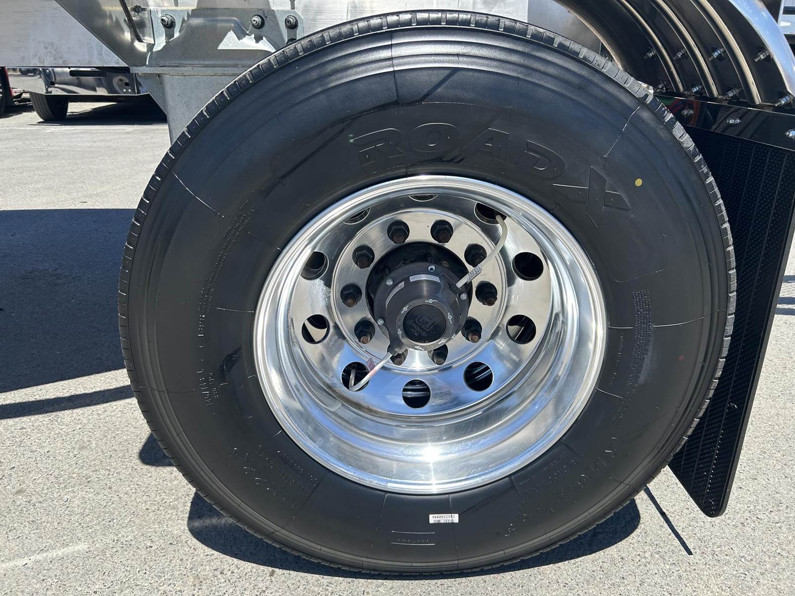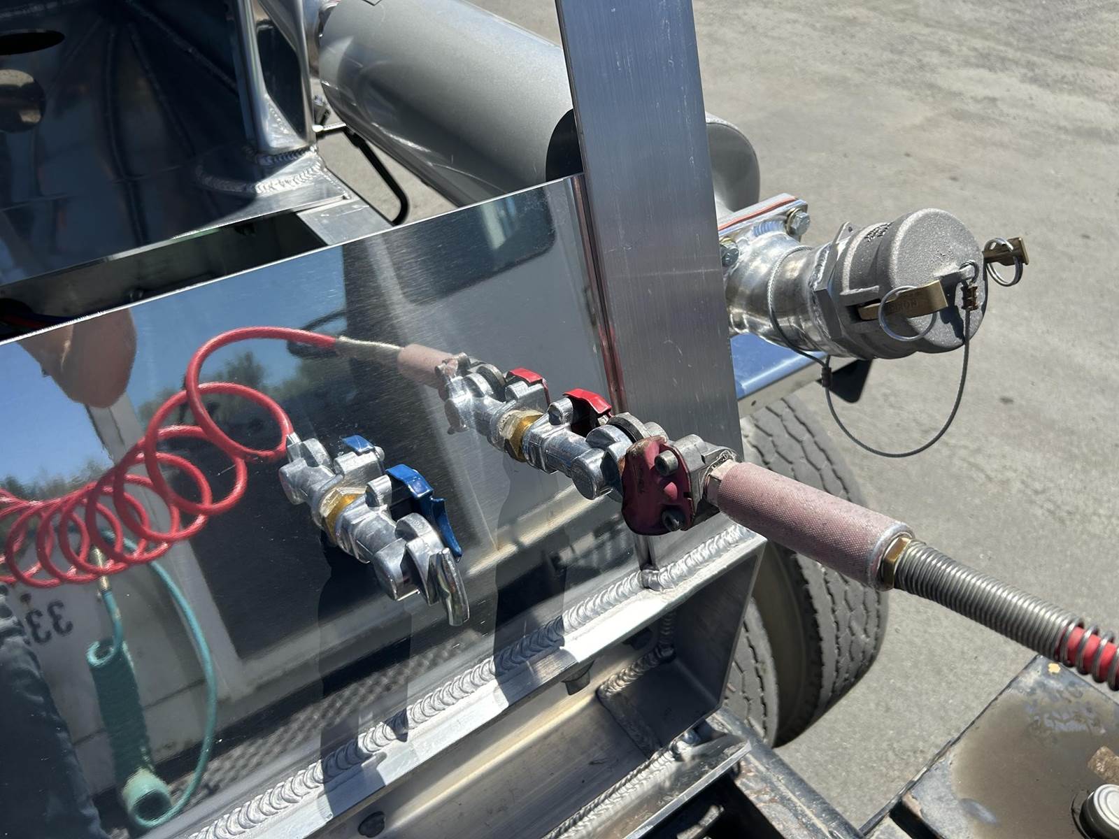550 cubic feet capacity, all aluminum construction, Beall fabric aeration with 2" ball valve control and (1) 2" check valve (no top air), 5" x 4" aluminum discharge y-branch with 5" butterfly valve, angled 45 degrees to street-side rear, Terminate with 4" female coupler and plug, 3" silencer installed downstream of street-side air inlet, (2) ribbed aluminum fenders over rear axle, (1) Hendrickson Intraax AANT 23,000# RTR assemblies, RoadX 11R22.5 tires on 10 stud hub pilot aluminum wheels, Hendrickson Tiremaax CP inflation system, Jost two-speed with sand shoes, pintle hitch at rear…